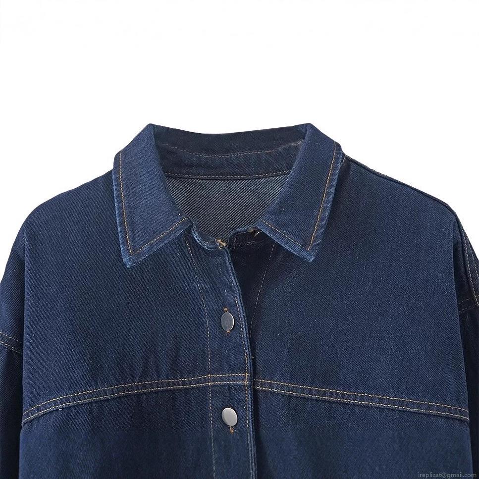 • Women's Loose Denim Jacket Casual Long Sleeve Solid Color Lapel Outerwear With Metal Buttons Contrast Stitching Streetwear Style For Autumn