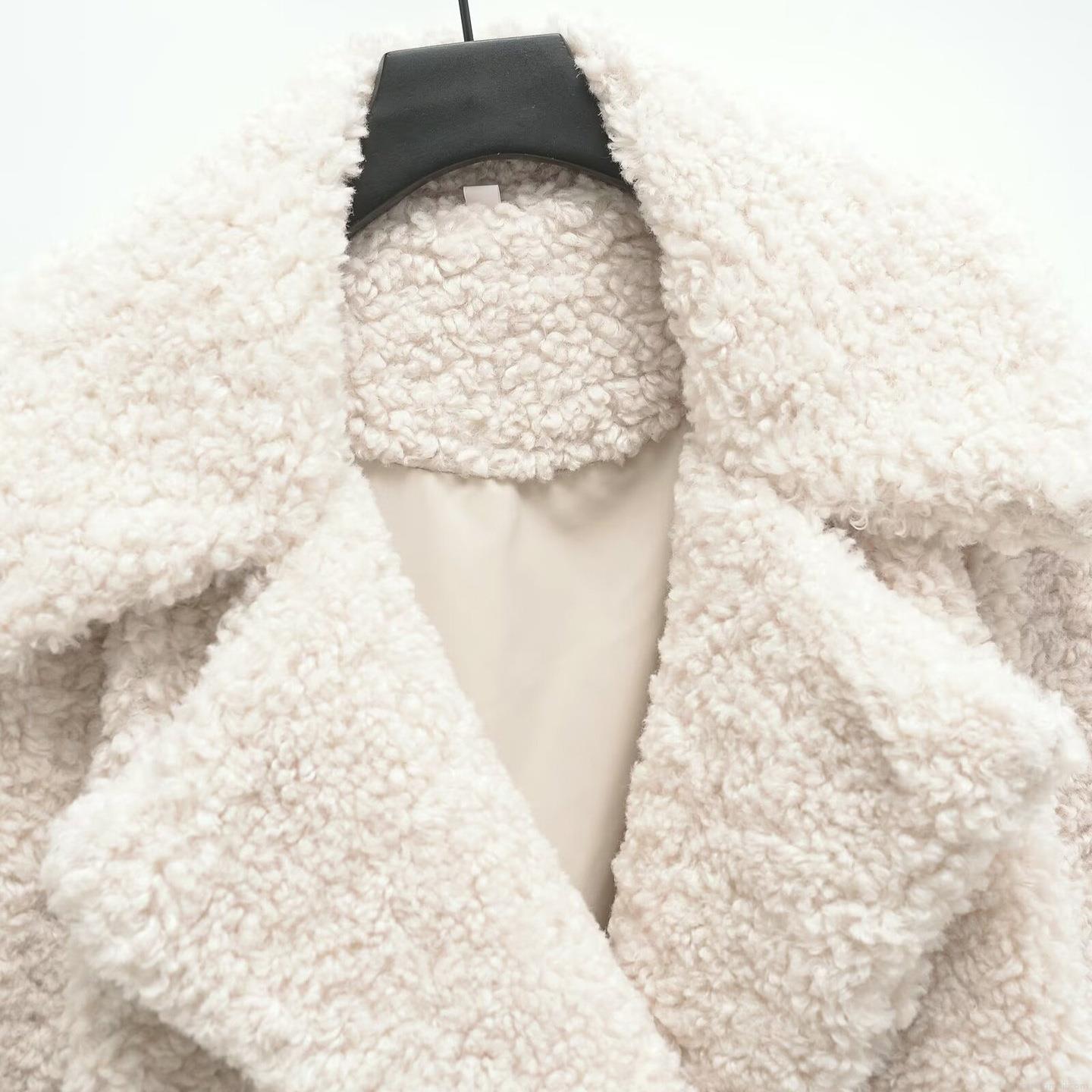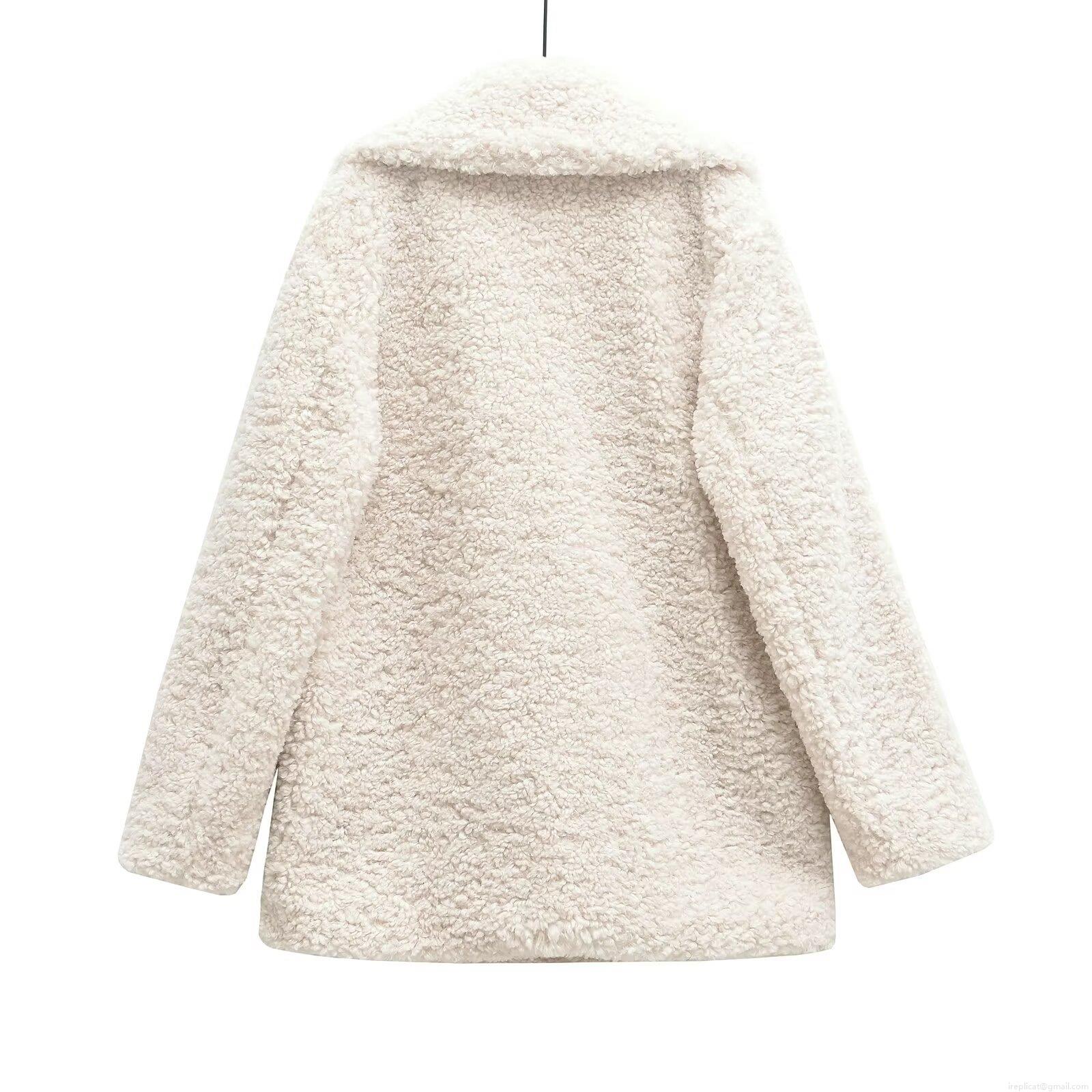 • Women's Loose Faux Fur Coat Teddy Fleece Overcoat Winter Warm Soft Plush Jacket With Suit Collar Solid Color Casual Outerwear For Women