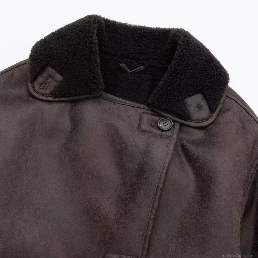 Women's Loose Faux Fur Integrated Suede Jacket Warm Lapel Button Coat Casual Winter Autumn Outwear For Ladies