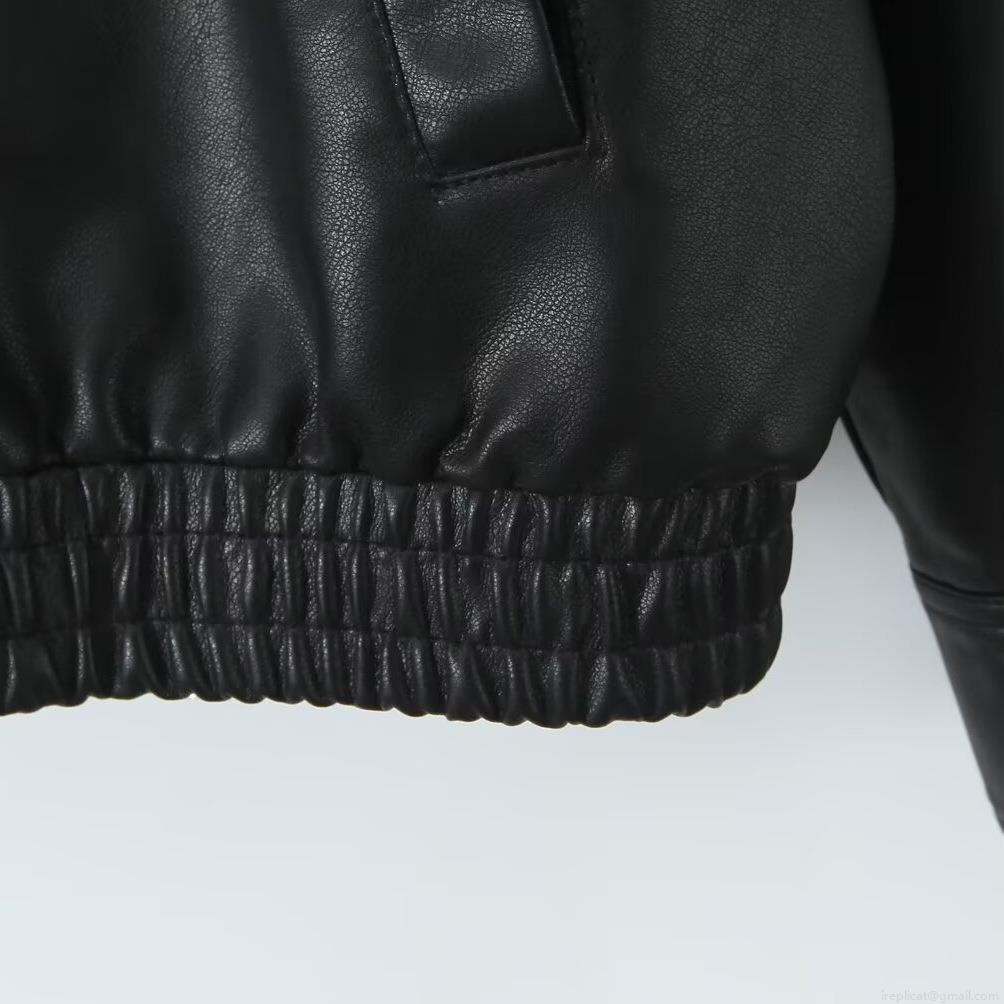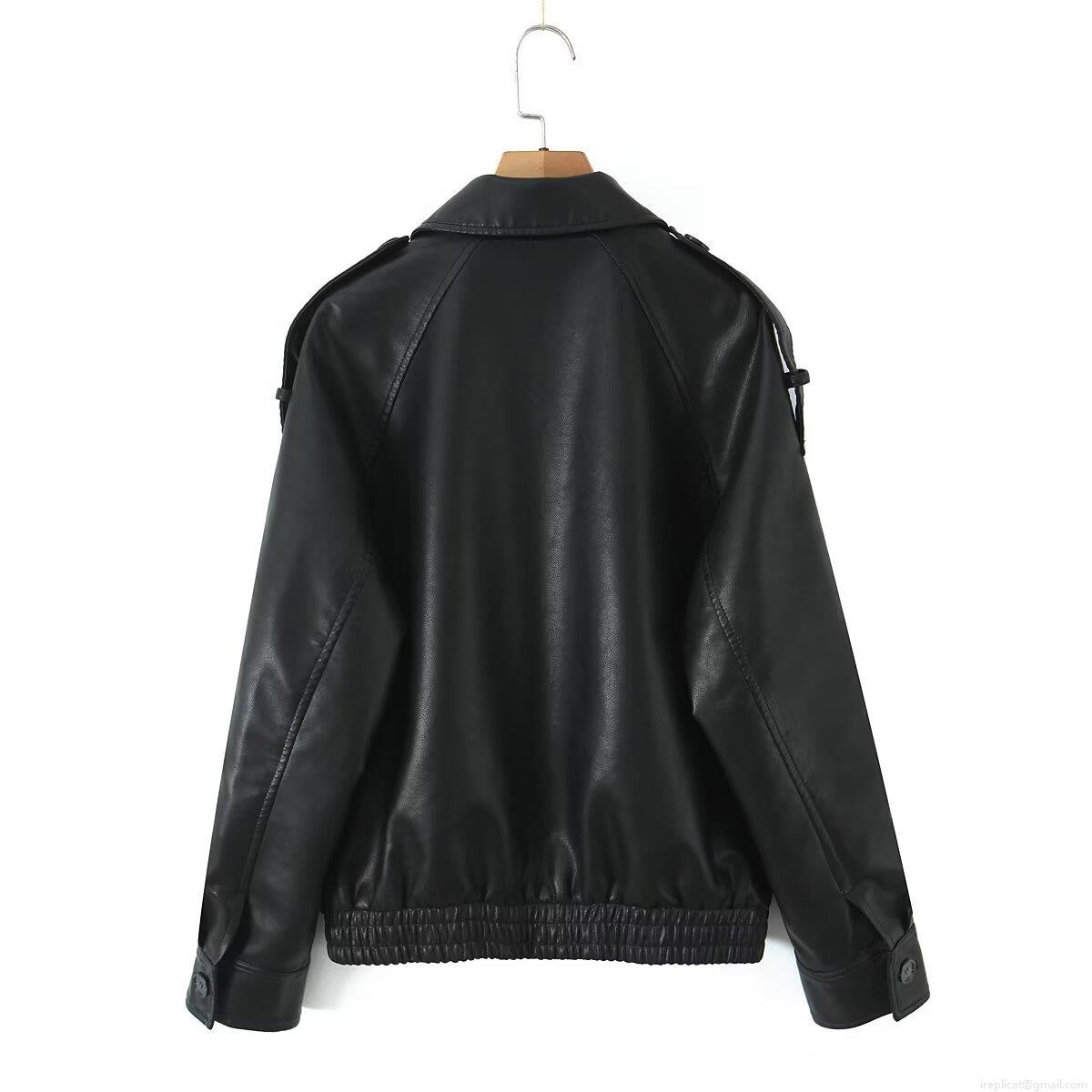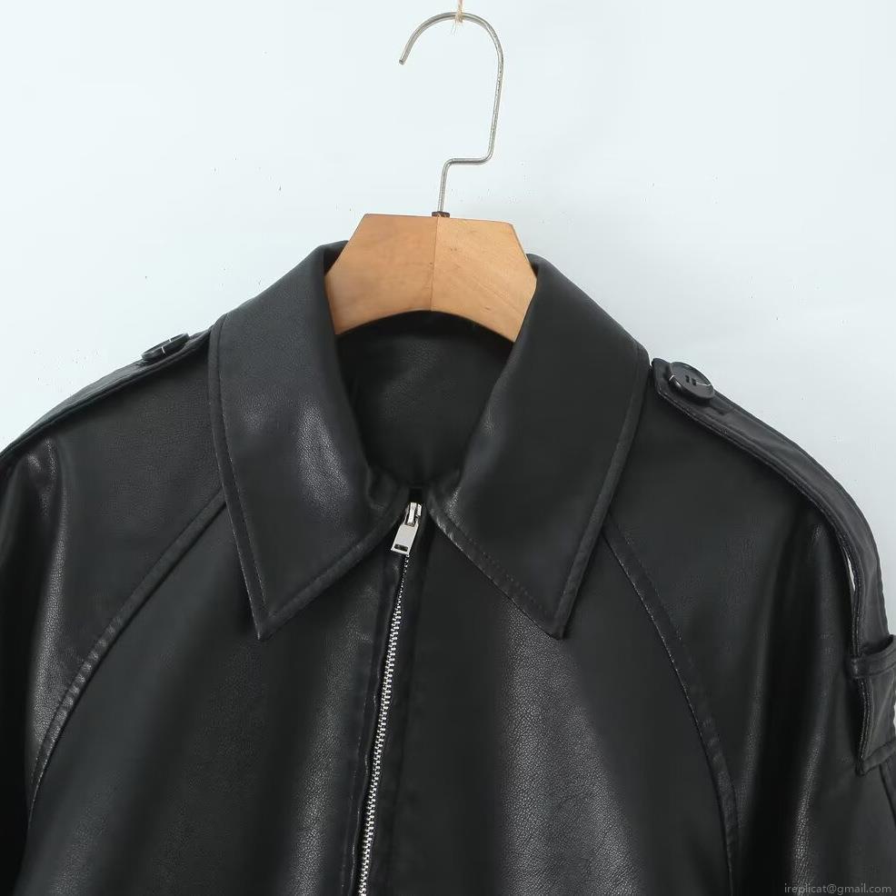 • Women's Loose Faux Leather Biker Jacket Polyurethane Polyester Lapel Collar Zipper Long Sleeve Casual Autumn Coat Outwear With Pockets