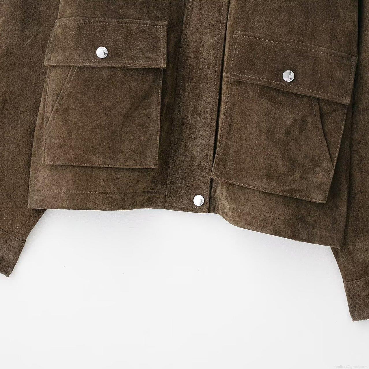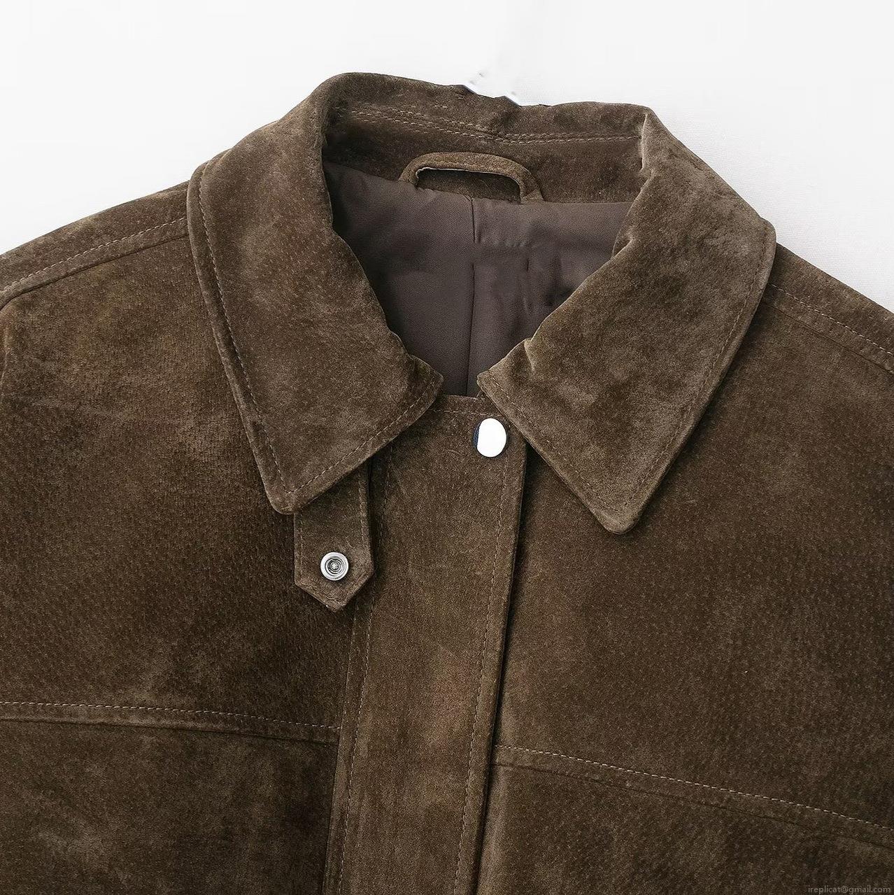 • Women's Loose Faux Suede Jacket Casual Workwear Short Flight Coat With Pockets Metal Buttons Solid Color Autumn Long Sleeve Outerwear For Women