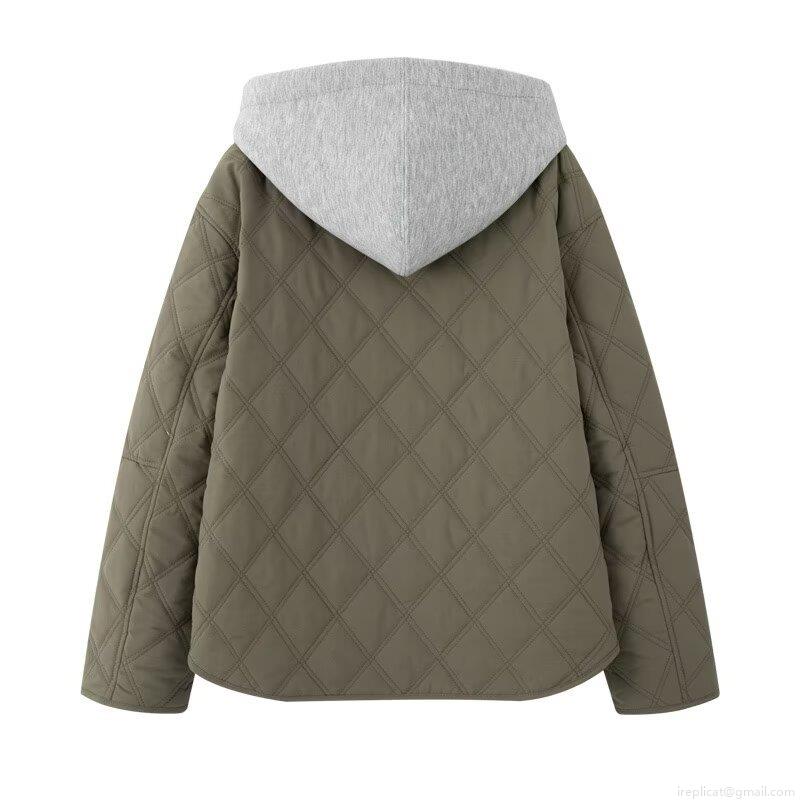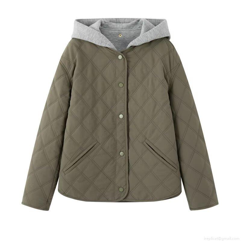 Solid Color, Pocket, Quilting, Diamond, Hood, Metal Snap, Fake Two-piece