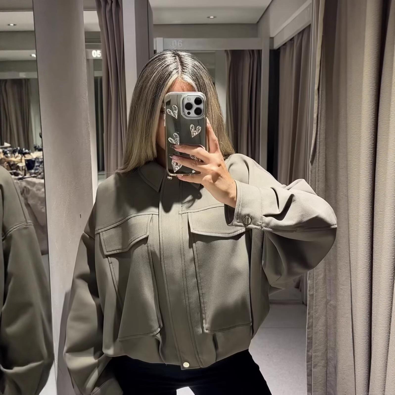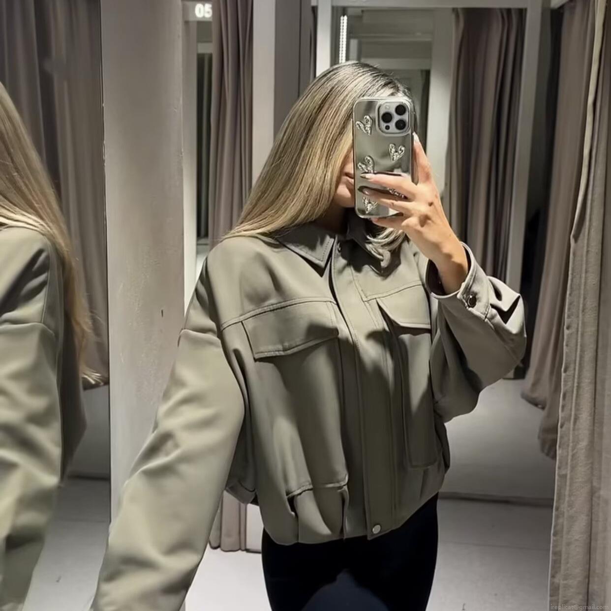• Women's Loose PU Leather Jacket Lapel Zipper Faux Leather Outerwear With Large Pockets Gathered Hem Solid Color Moto Jacket For Autumn Winter Streetwear