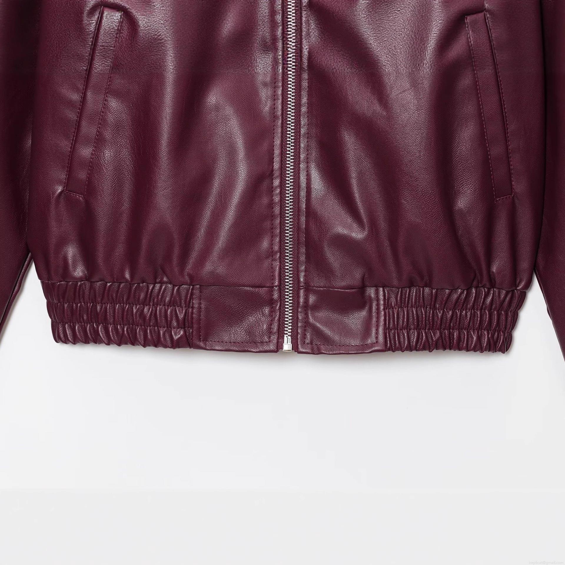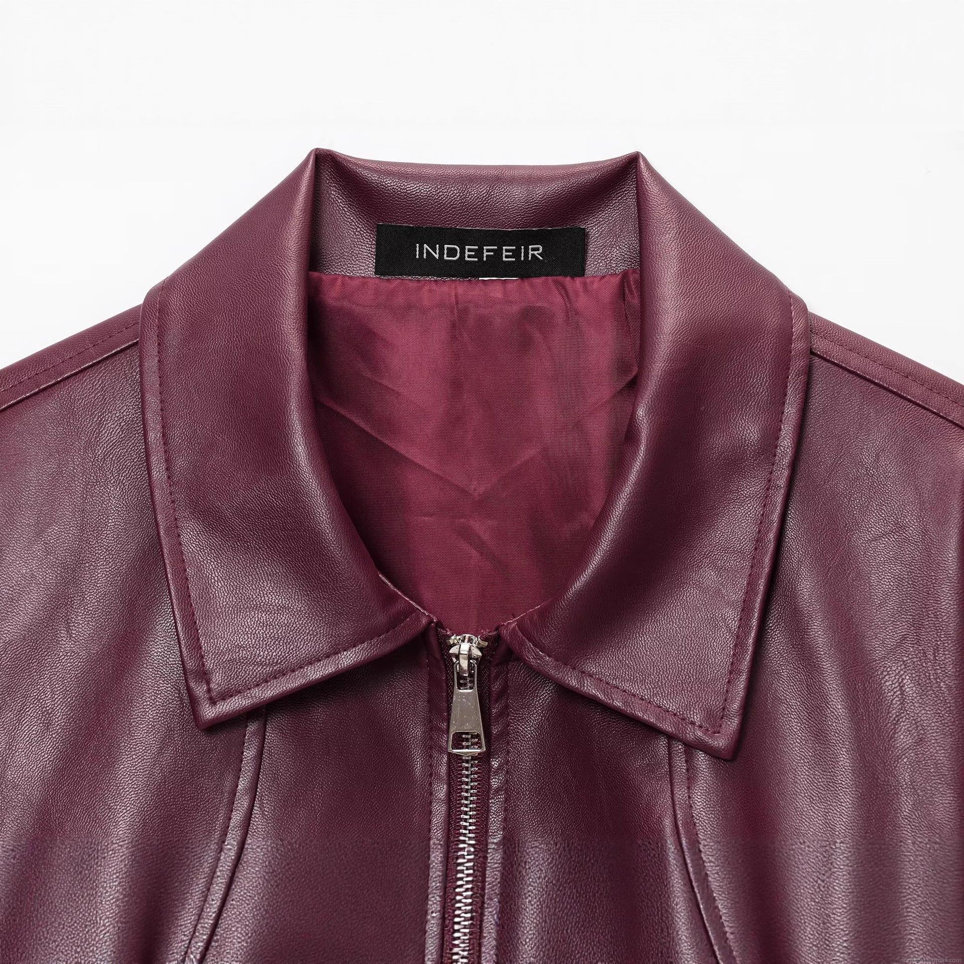 Women's Loose PU Leather Jacket Solid Wine Red Lapel Metal Zipper Long Sleeve Autumn Winter Streetwear Outerwear Casual Fashion Coat