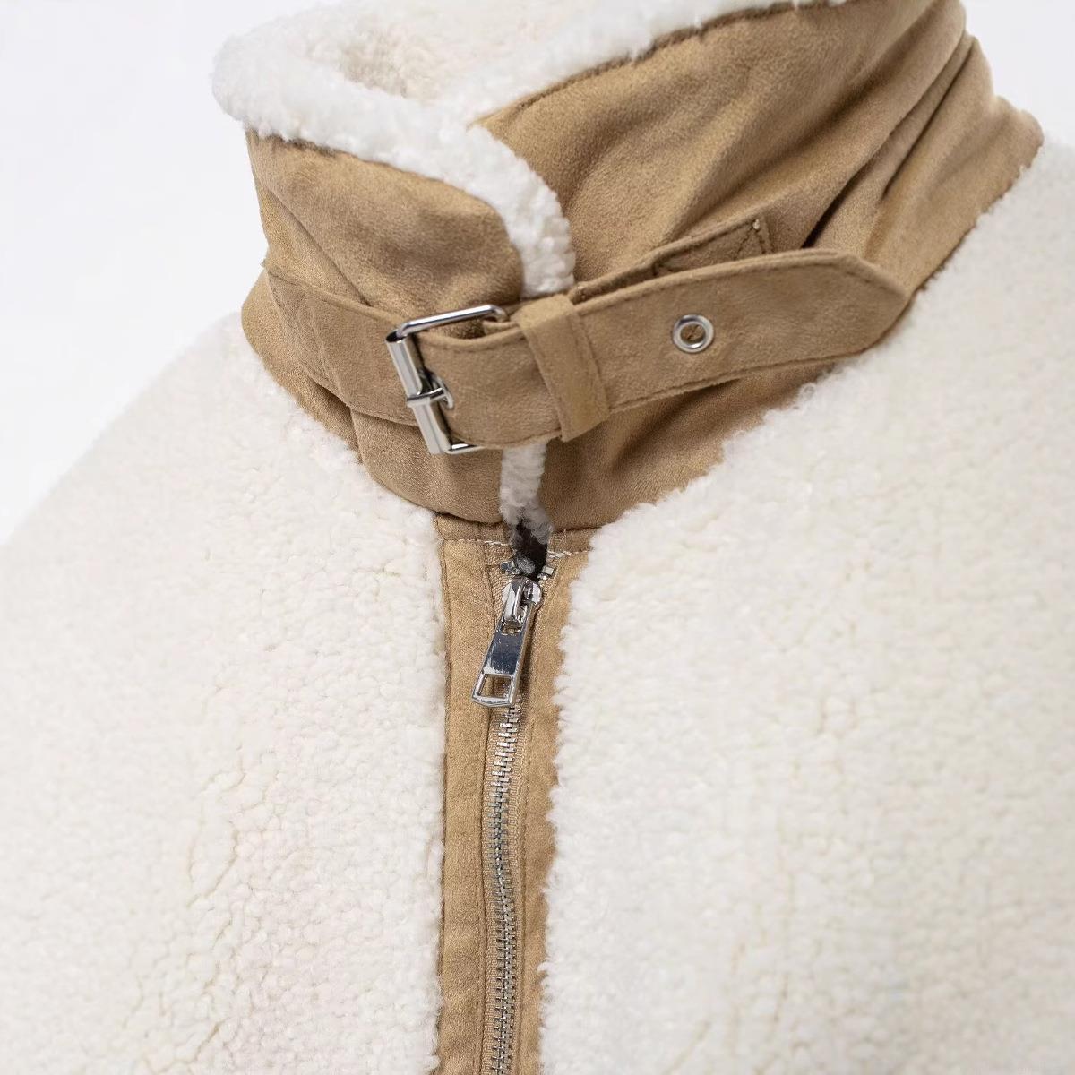 Color Blocking, Zipper, Metal Buckle, Lapel