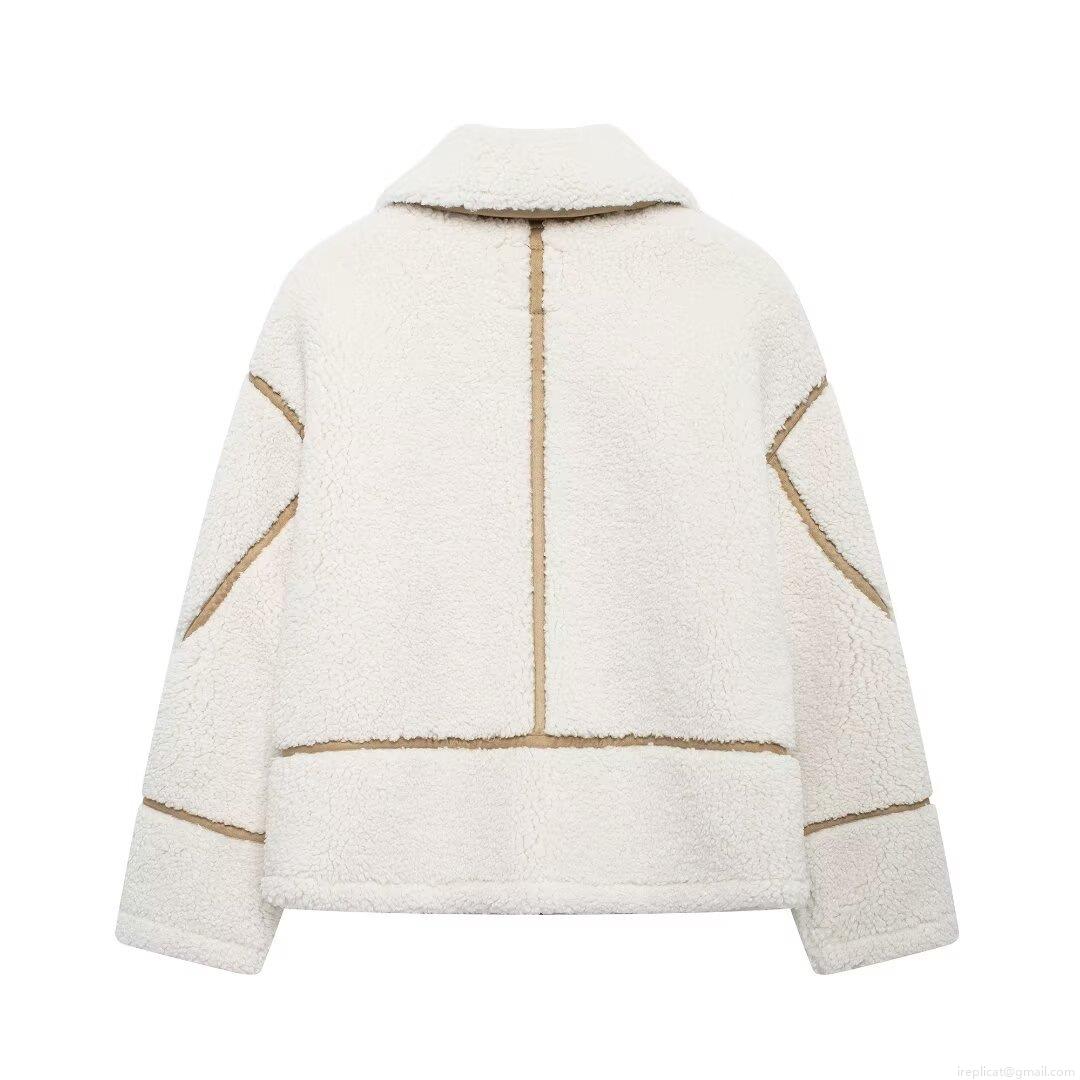 Women's Loose Sherpa Fleece Jacket Contrast Color Block Zip Up Lapel Outerwear Casual Warm Long Sleeve Winter Autumn Coat