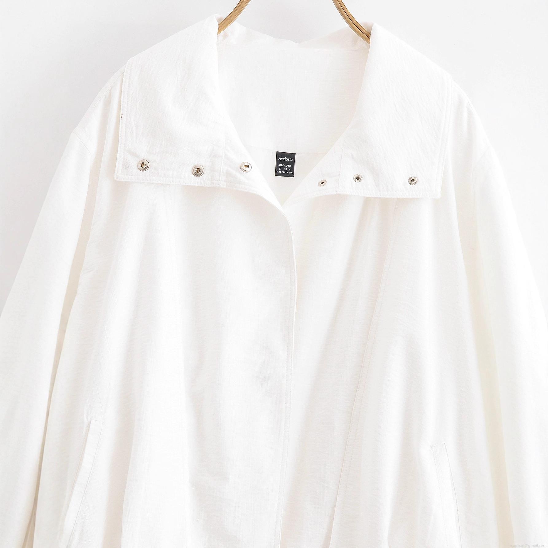 • Women's Loose Solid White Jacket 100% Polyester Lapel Single Breasted Long Sleeve Baseball Uniform Outerwear Streetwear For Women Autumn