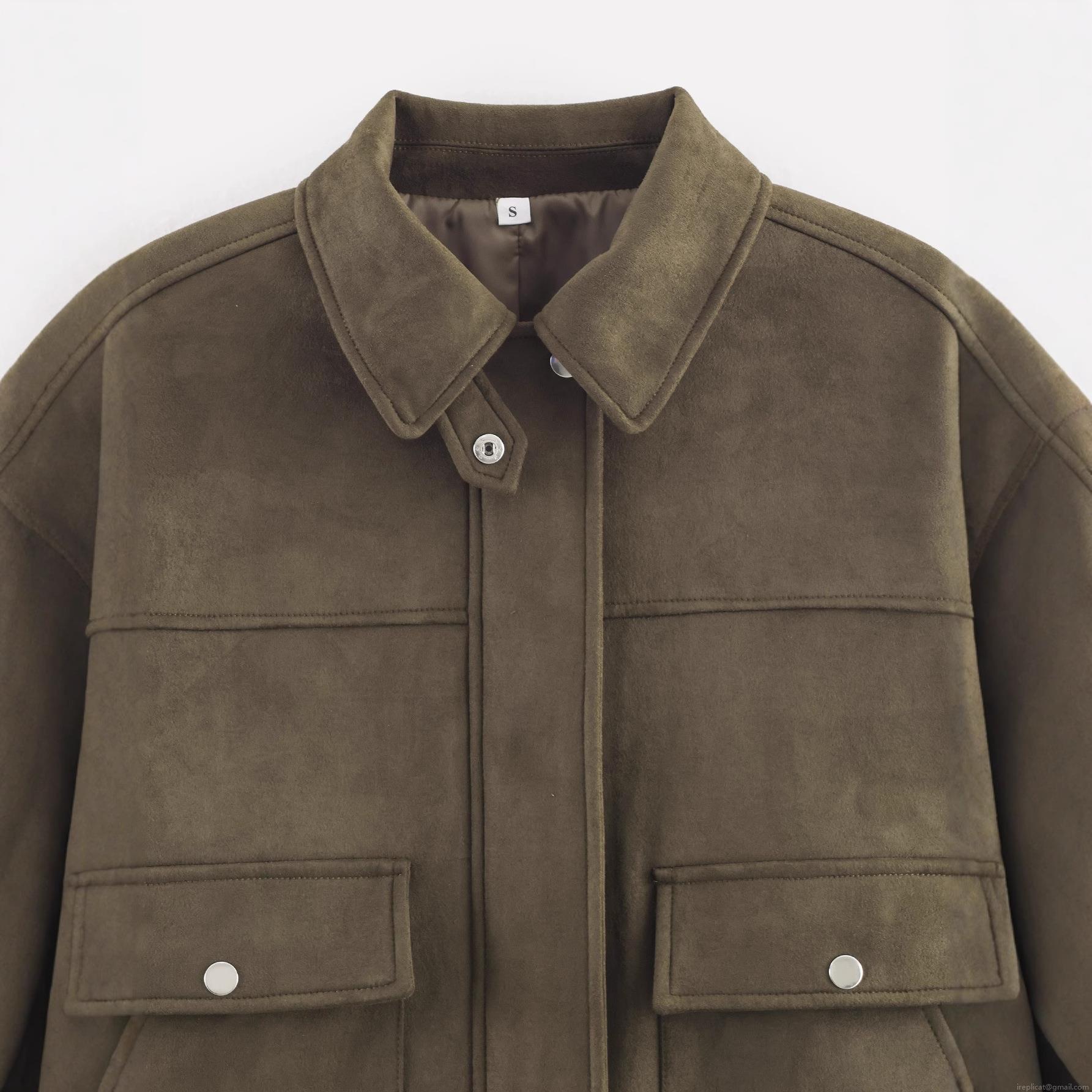 Women's Loose Suede Texture Jacket With Lapel Collar Single Breasted Metal Buttons Short Casual Streetwear Coat For Autumn Spring Lady