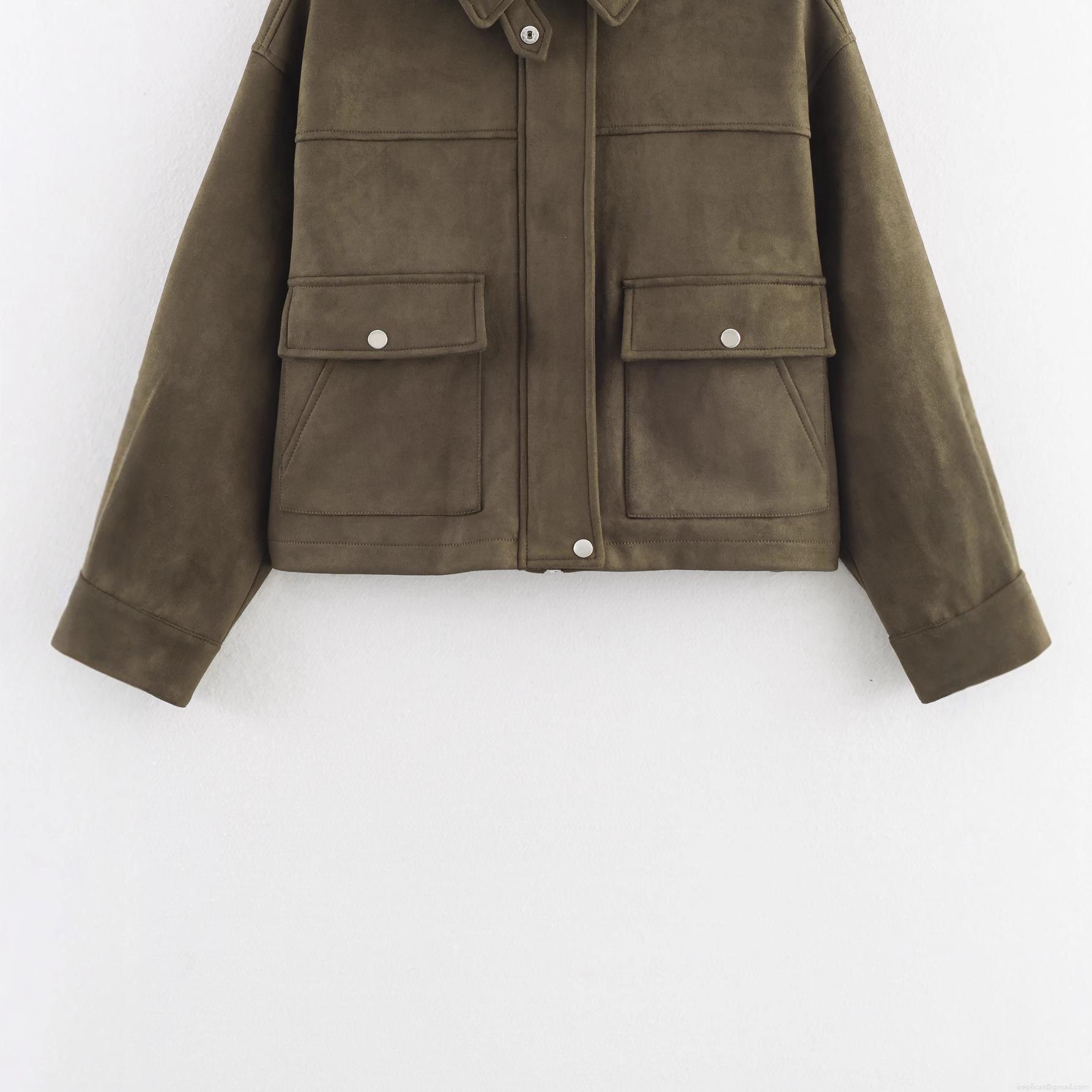 • Women's Loose Suede Texture Jacket With Lapel Collar Single Breasted Metal Buttons Short Casual Streetwear Coat For Autumn Spring Lady