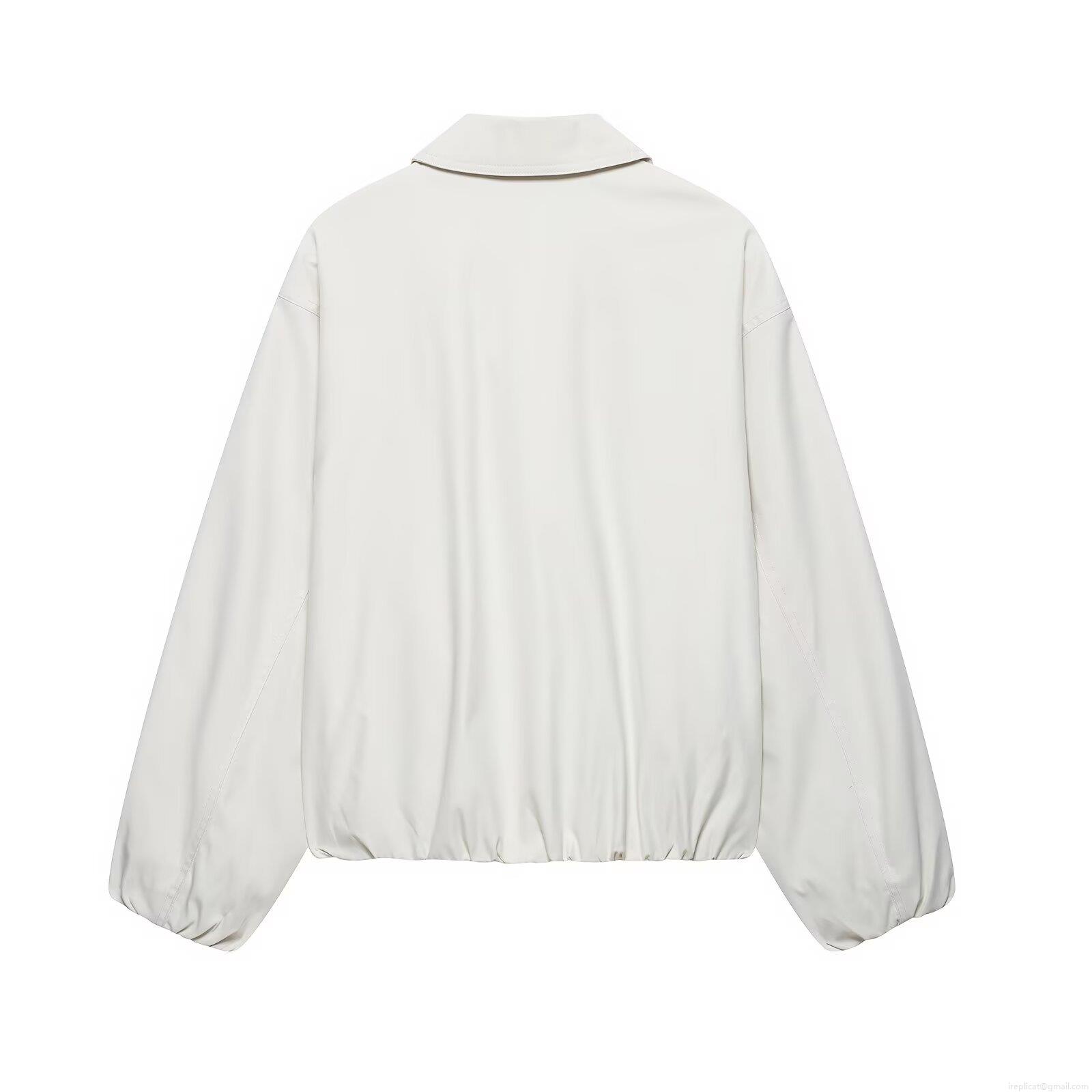 Women's Loose Zip-Up Jacket 100% Polyester Solid Color Turn-Down Collar Long Sleeve Outerwear Casual Streetwear Baseball Uniform Coat Spring Fall Fashion