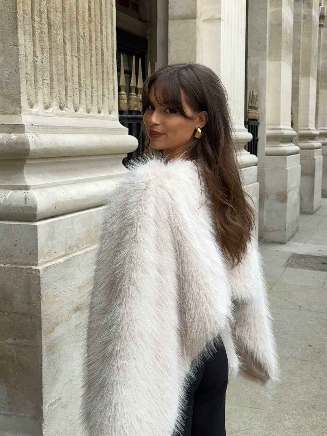 • Women's Luxury Faux Fox Fur Crop Jacket Round Neck Long Sleeve Solid White Faux Fur Outerwear With Satin Lining Streetwear Short Coat For Women Party Fashion
