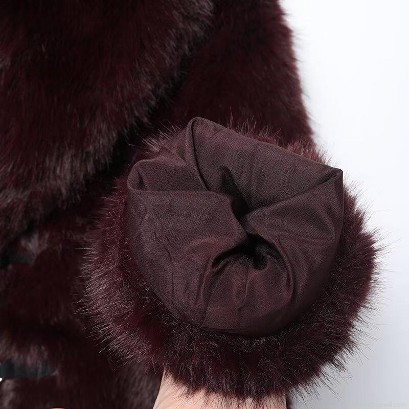 • Women's Luxury Faux Fur Coat Big Lapel Short Fluffy Jacket With Metal Buckles And Leather Straps Thick Warm Outerwear For Autumn Winter Streetwear Wine Red