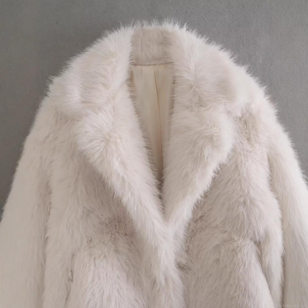 • Women's Luxury Faux Fur Coat Elegant Large Lapel Long Sleeve Winter Warm Outerwear Thick Plush Solid Color Socialite Style Jacket For Party Night Out Streetwear