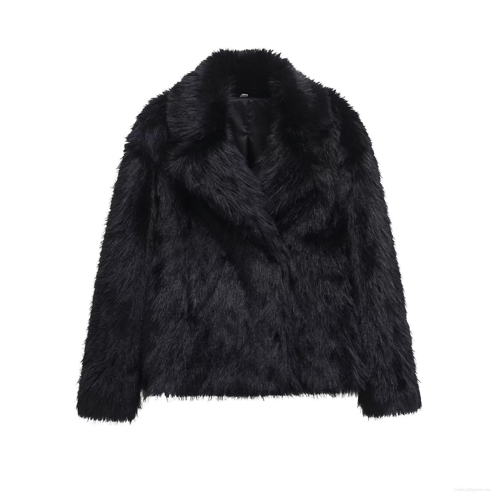 • Women's Luxury Faux Fur Jacket Lapel Collar Long Sleeve Solid Color Thick Plush Winter Warm Coat Casual Streetwear Fashion Outwear For Ladies