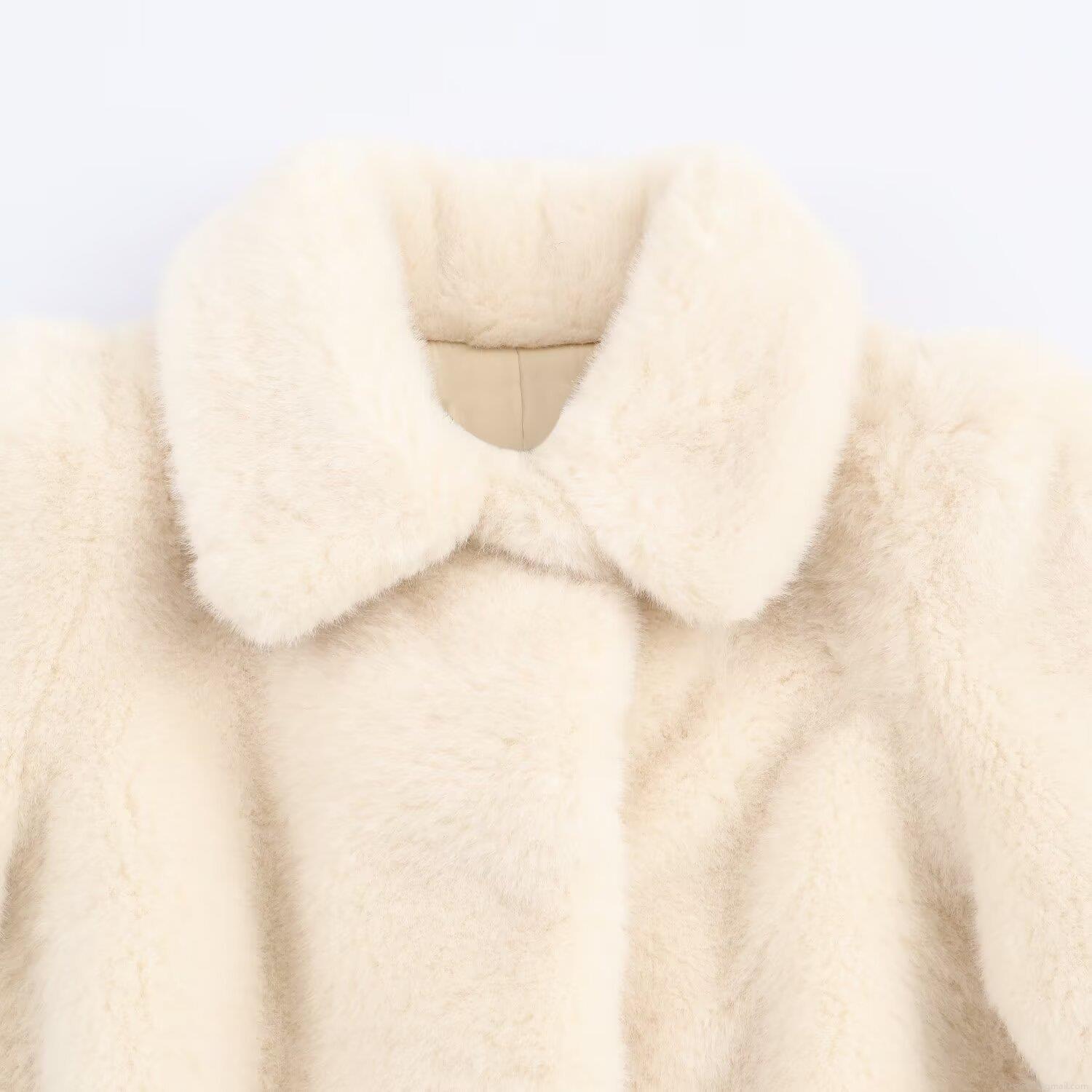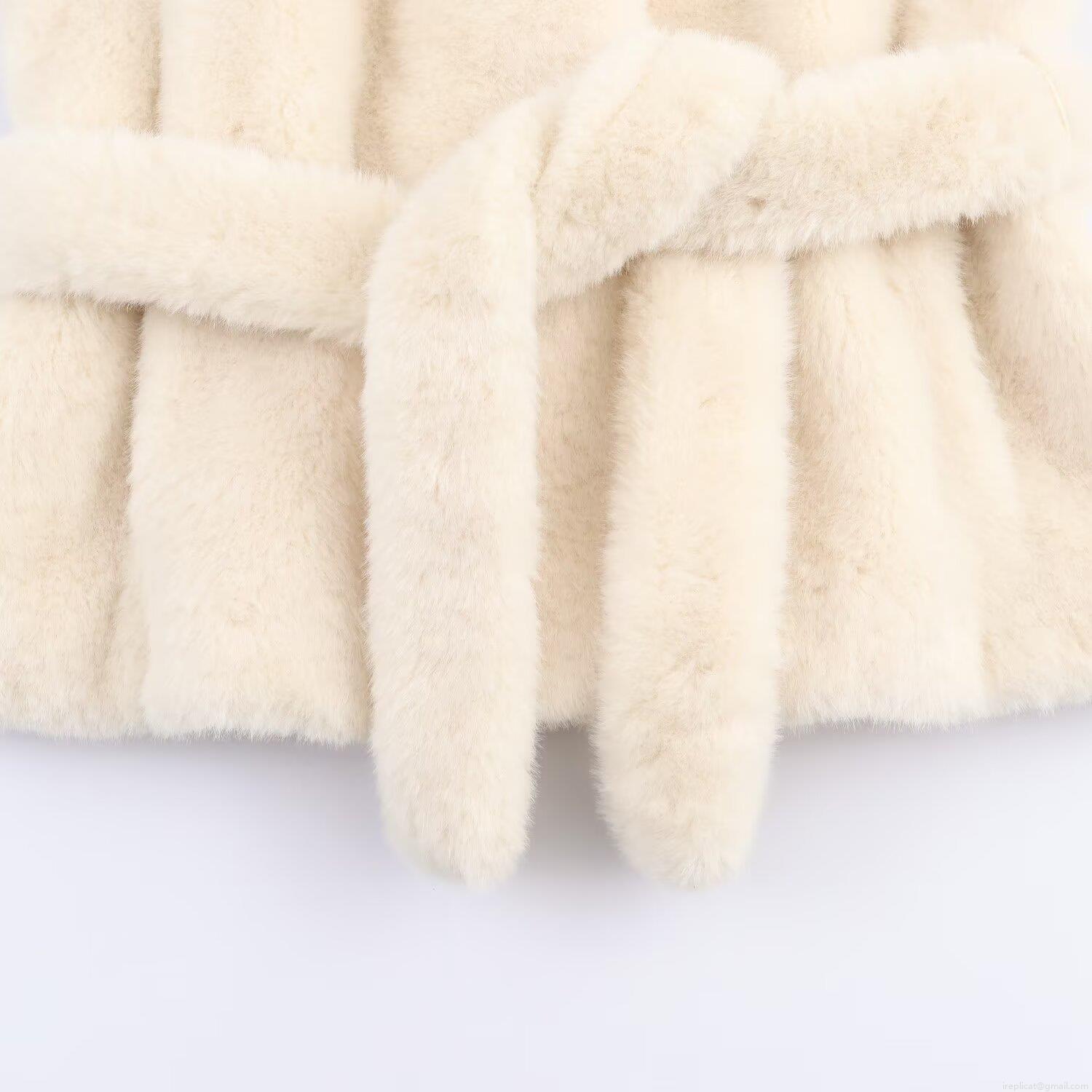 Solid Color, Belt Decoration, Artificial Fur, Lapel Design