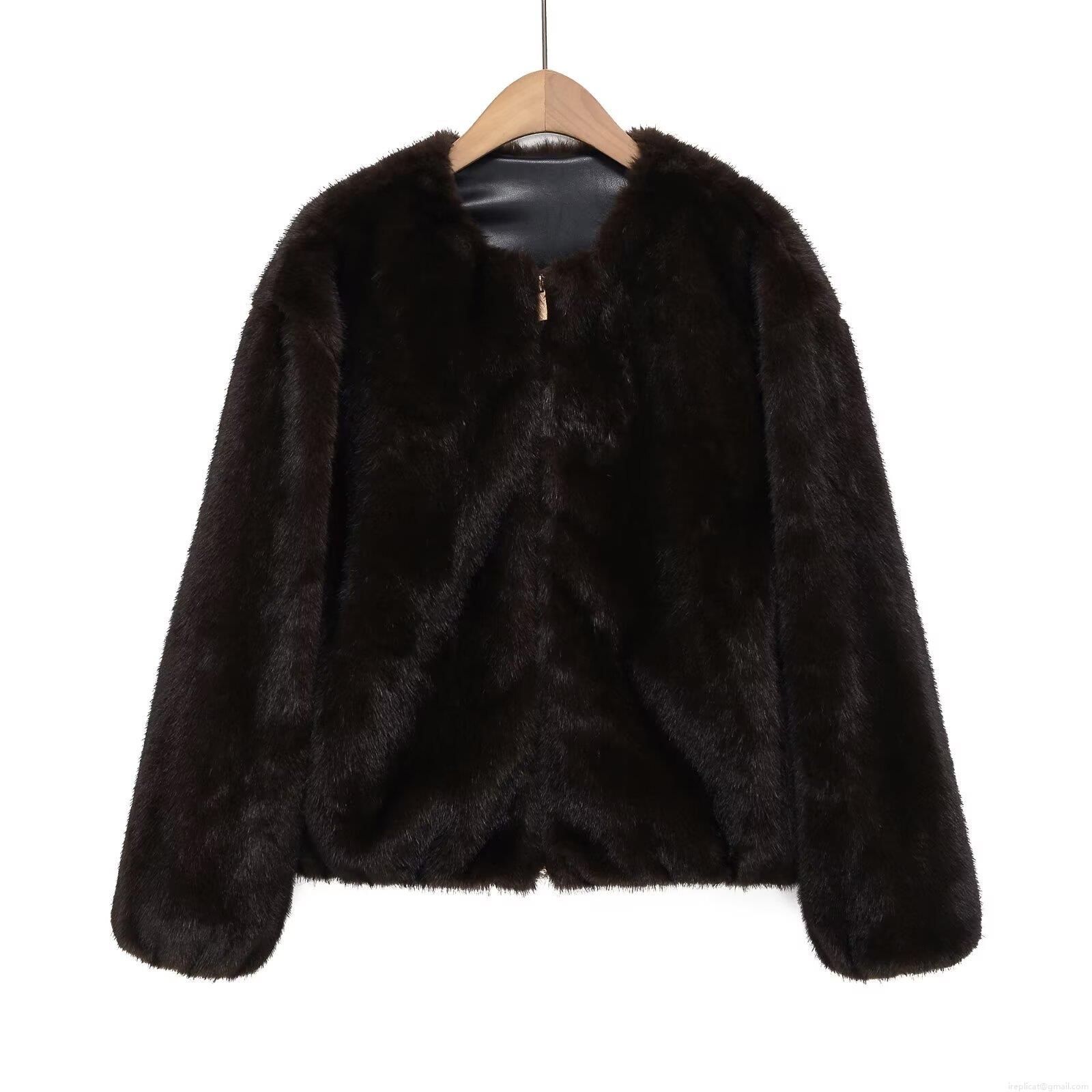 • Women's Luxury Faux Fur Round Neck Zipper Jacket Autumn Winter Thick Warm Solid Color Streetwear Polyester Blend Coat Outwear For Women