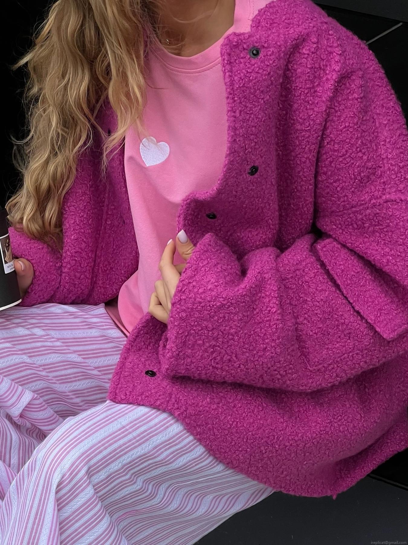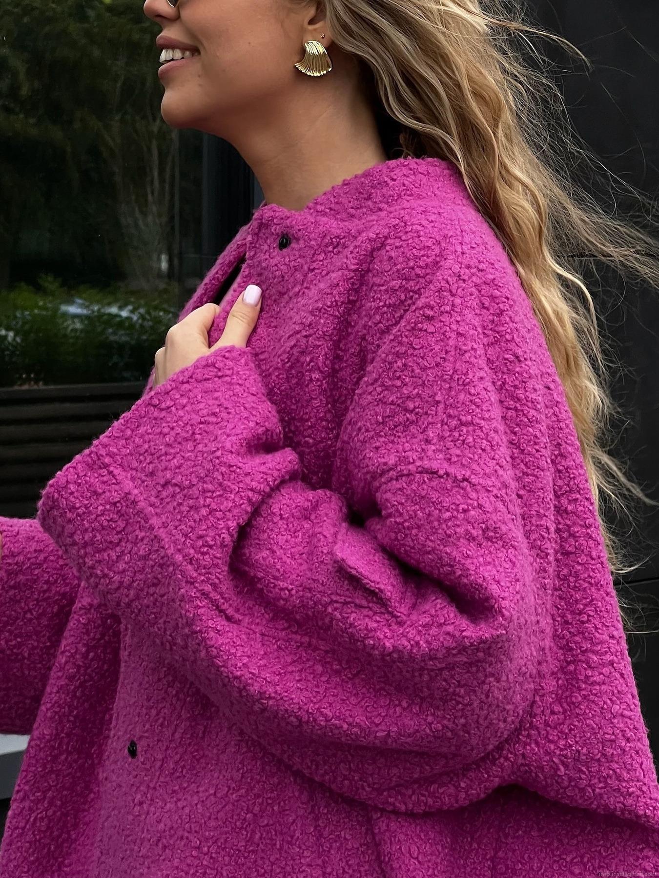 • Women's Magenta Sherpa Fleece Jacket Chic French Style Loose Fit Plush Cardigan Long Sleeve Drop Shoulder Faux Fur Coat For Autumn Winter Streetwear