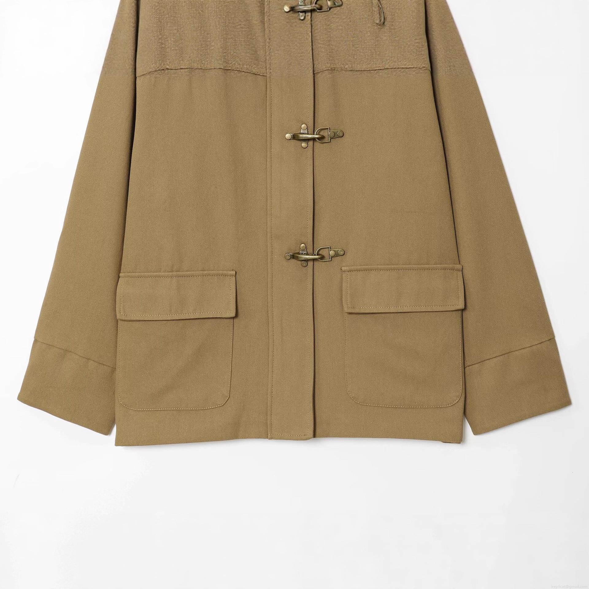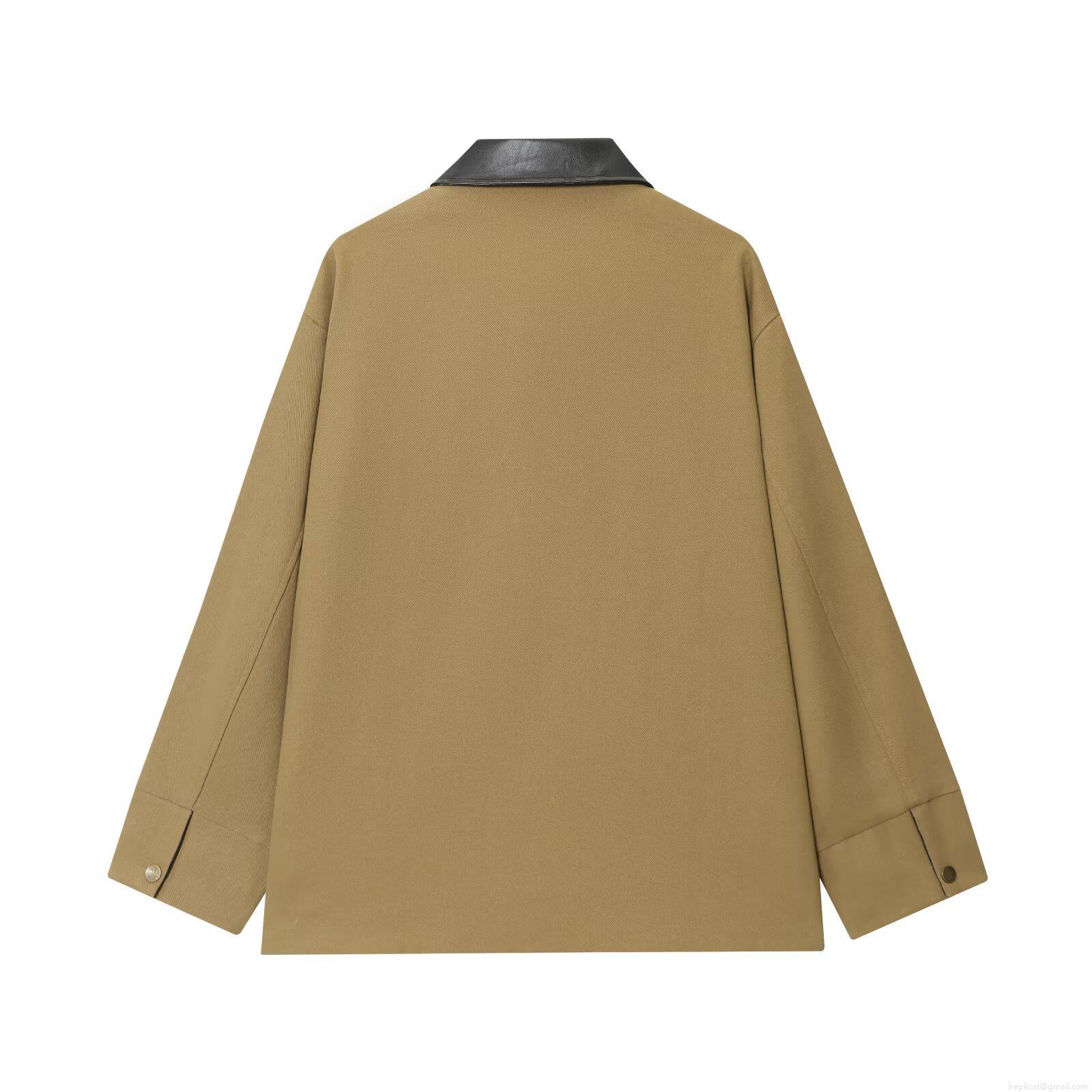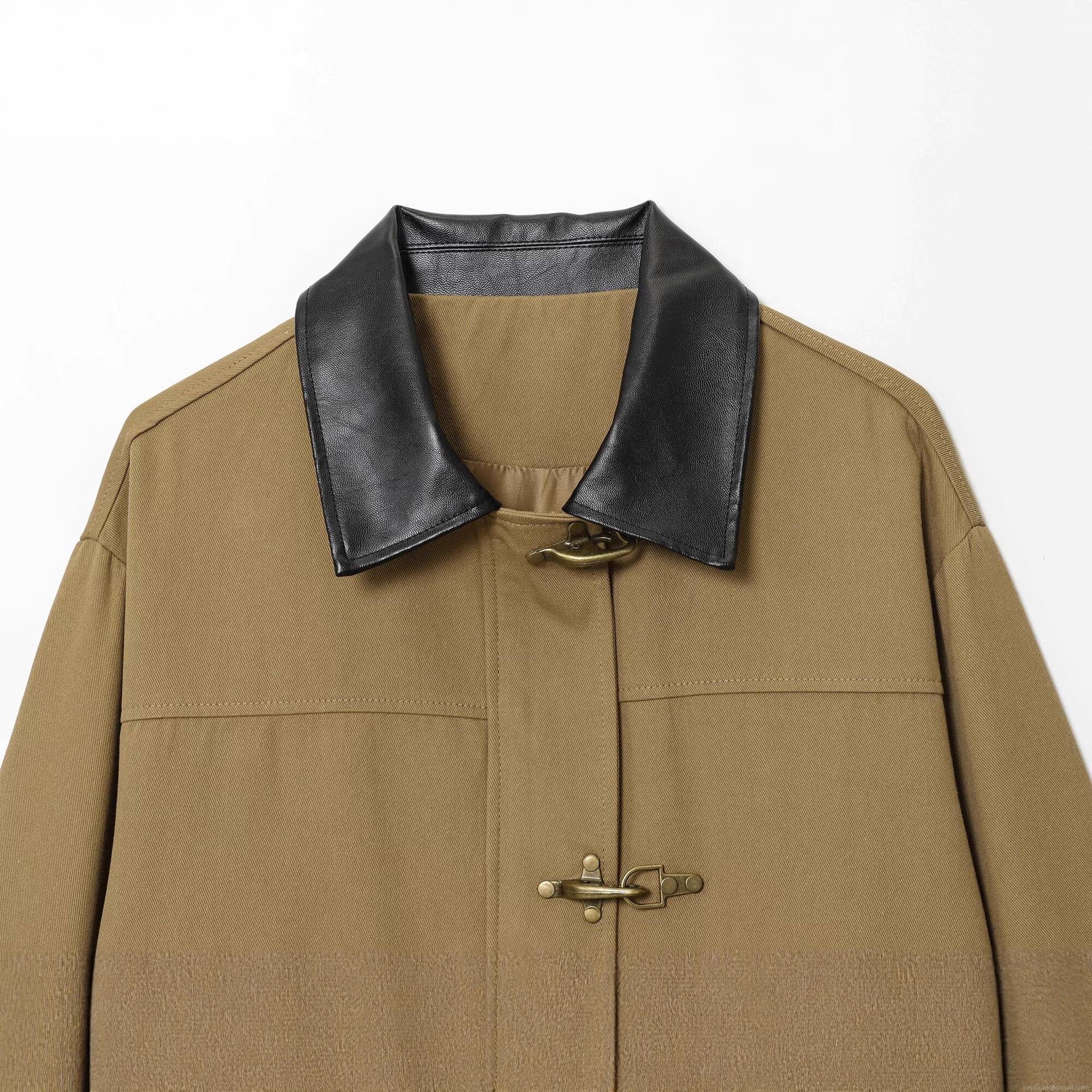 • Women's Mid-Length Patchwork Jacket Coat With PU Leather Collar Metal Hook Buckle Retro Loose Fit Utility Workwear For Autumn Winter Streetwear