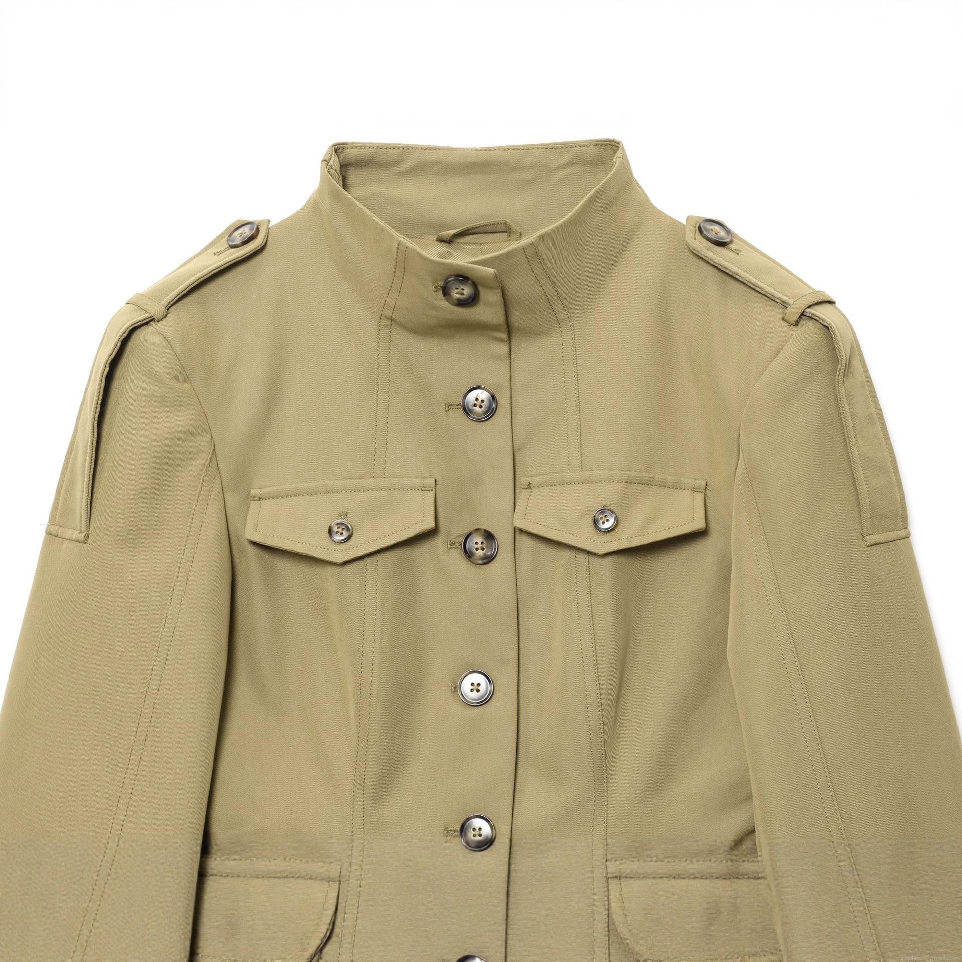 • Women's Military Style Jacket Casual Khaki Utility Outerwear Stand Collar Long Sleeve Multi Pocket Button Down Coat For Women Fashion Autumn Spring