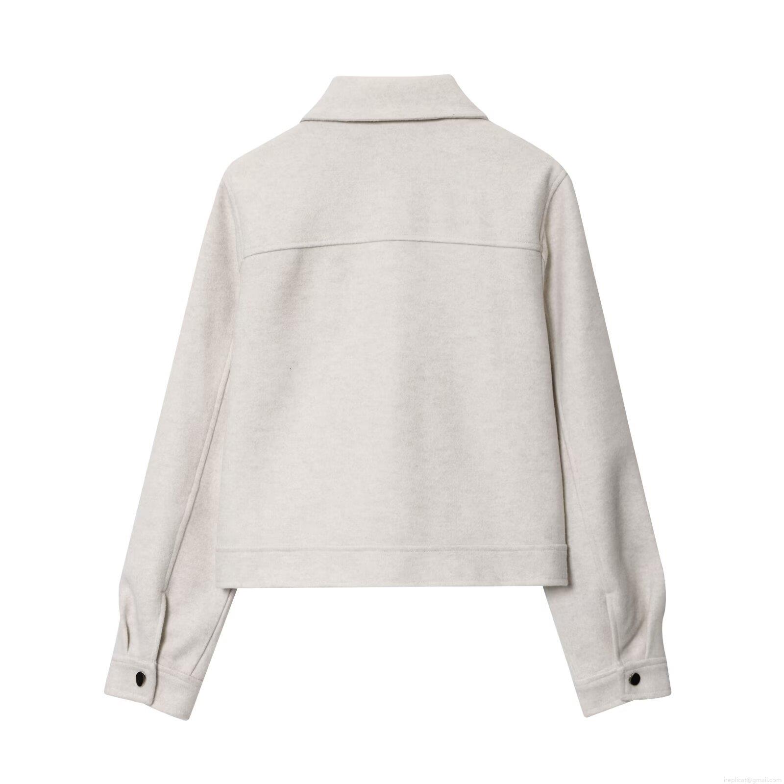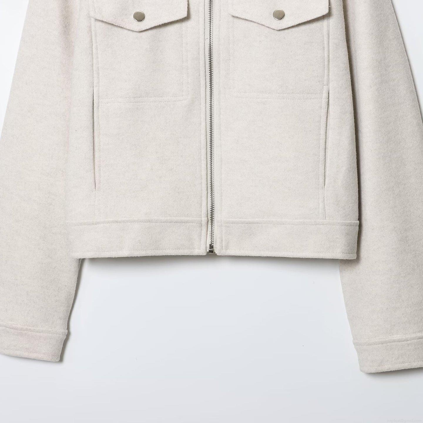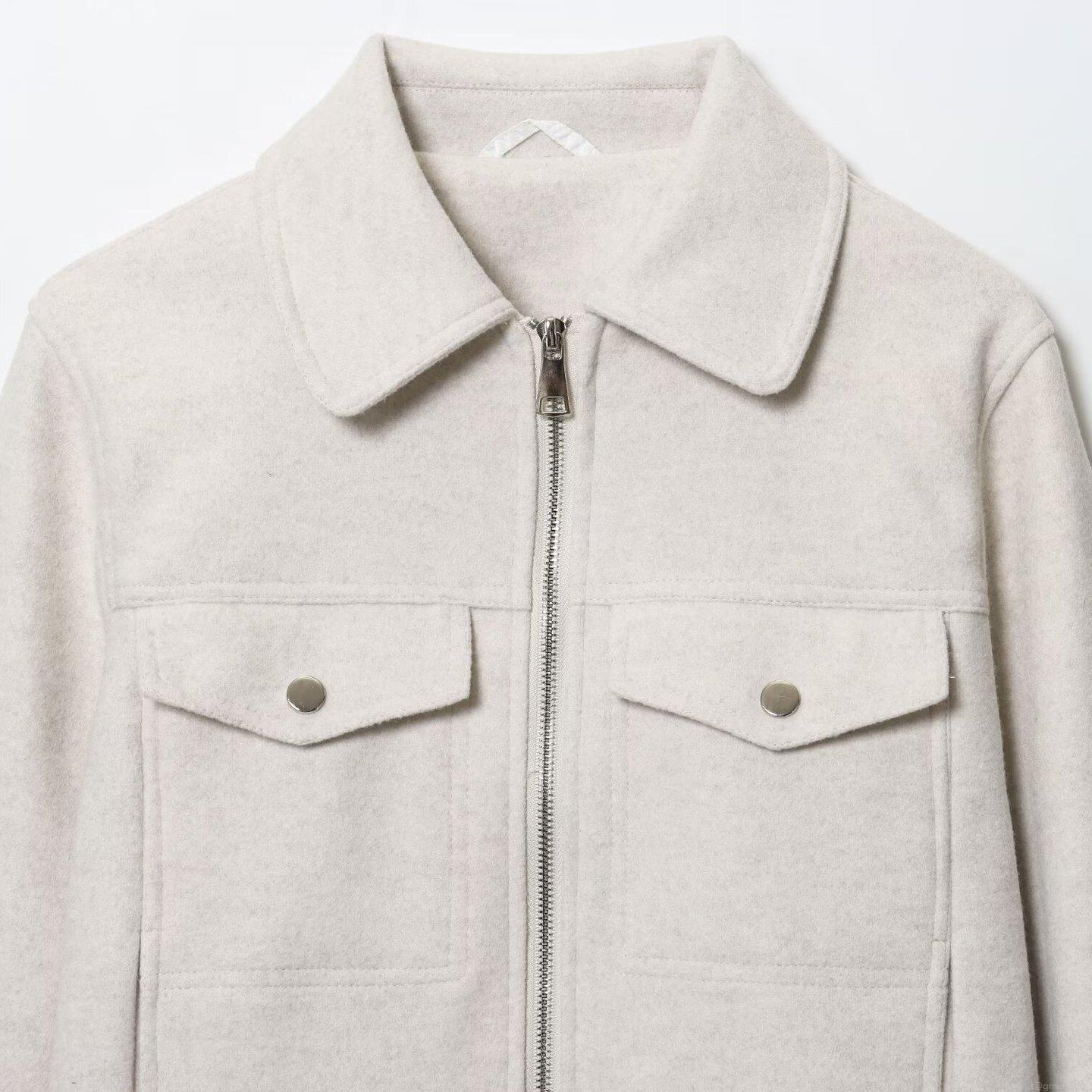 • Women's Minimalist Casual Zipper Jacket Lapel Long Sleeve Woolen Feel Outerwear With Cargo Pockets Polyester Blend Fashion Coat For Autumn Winter