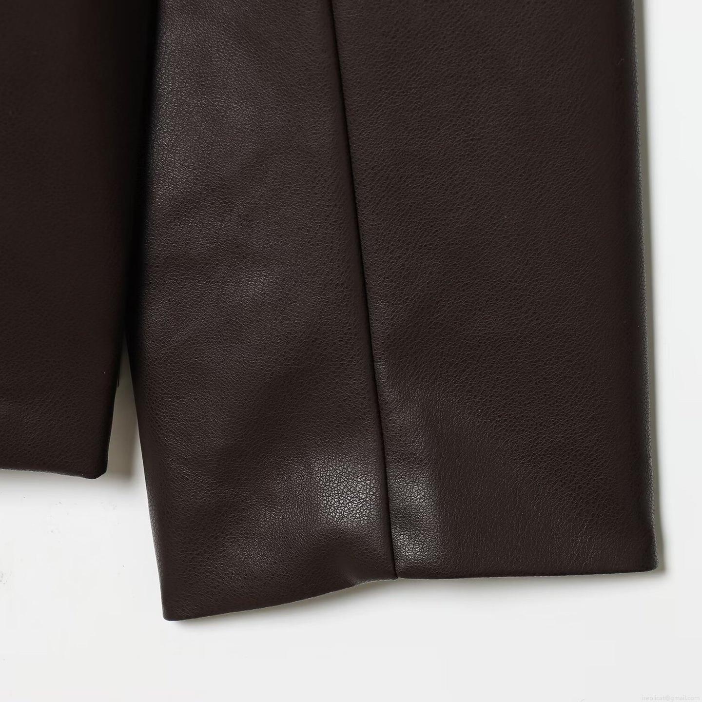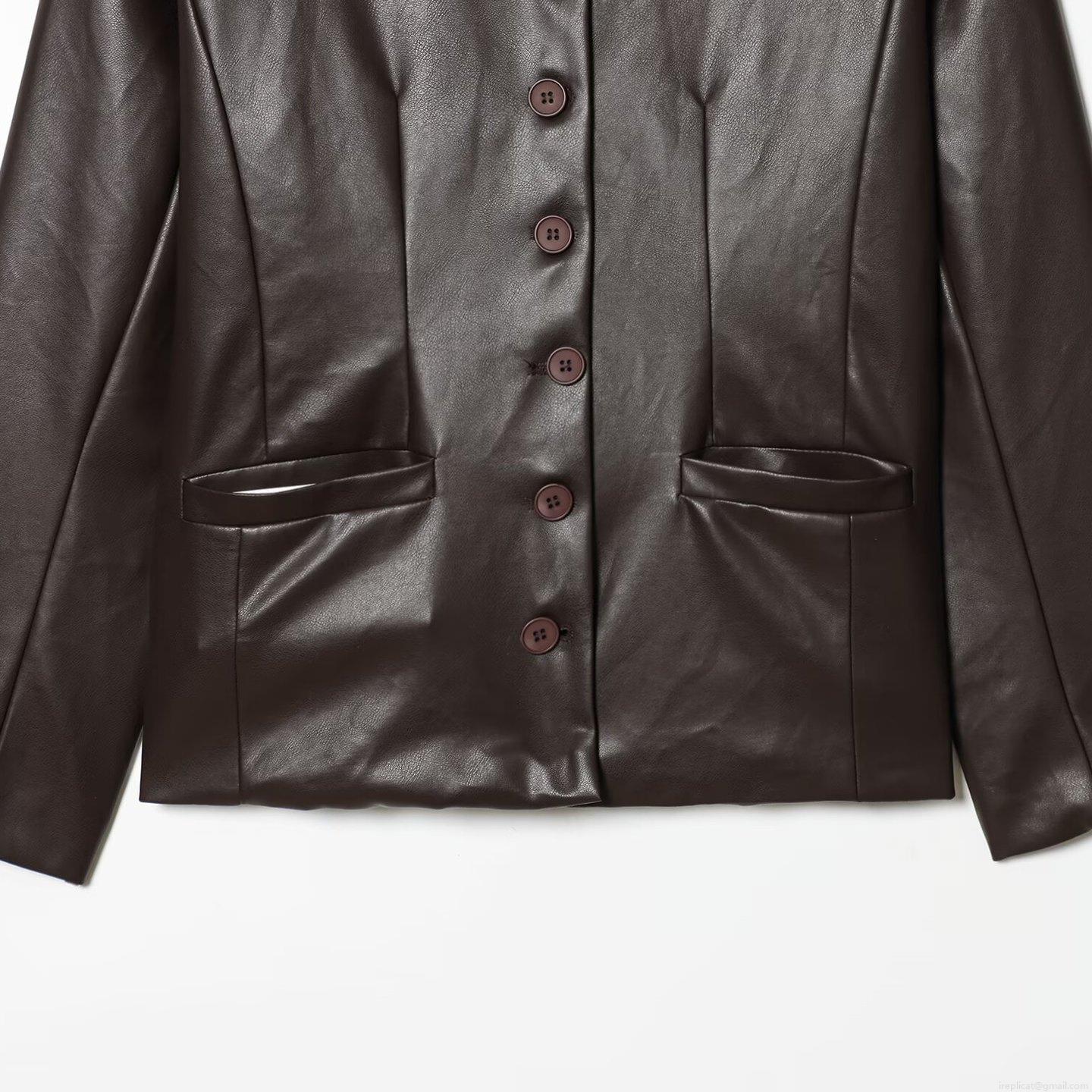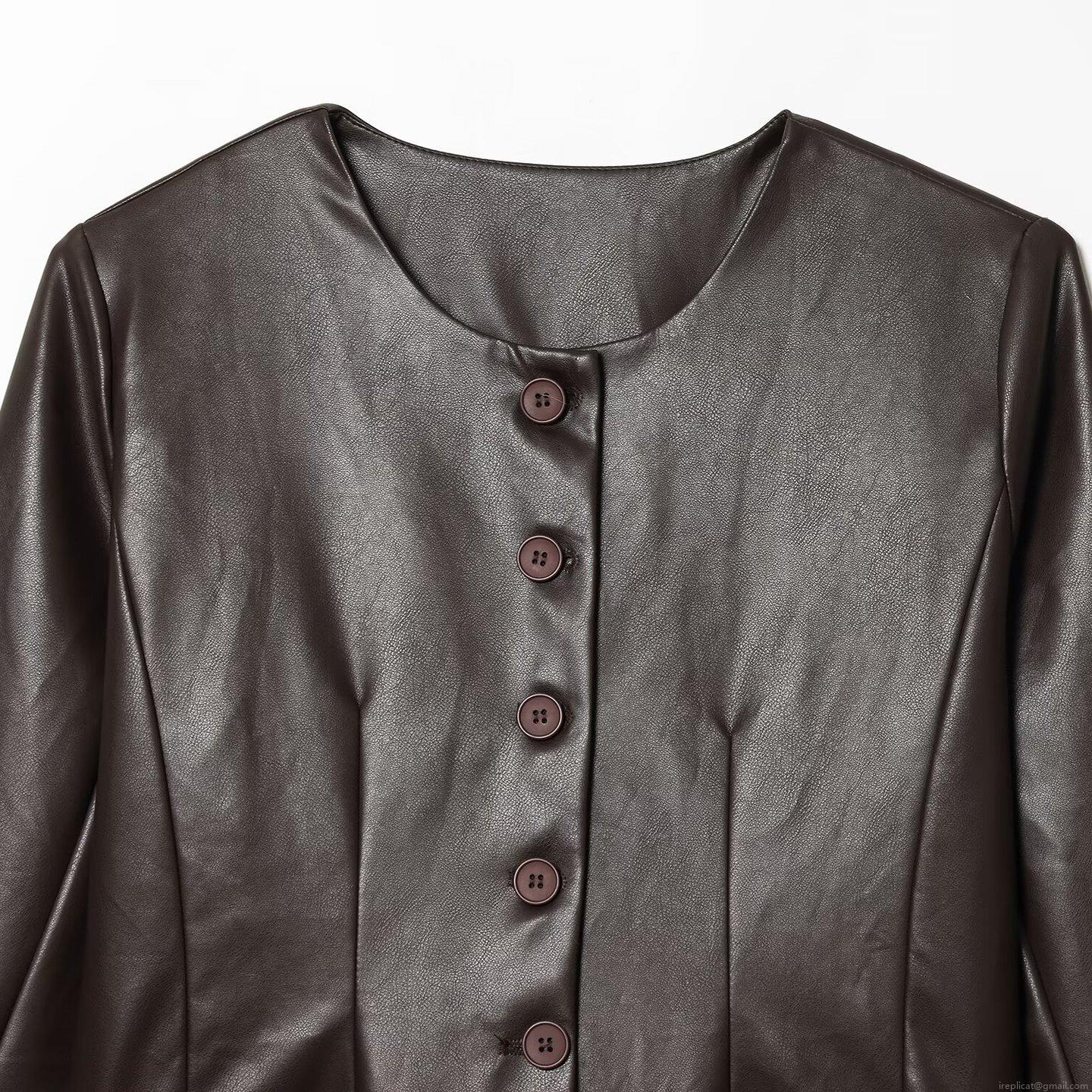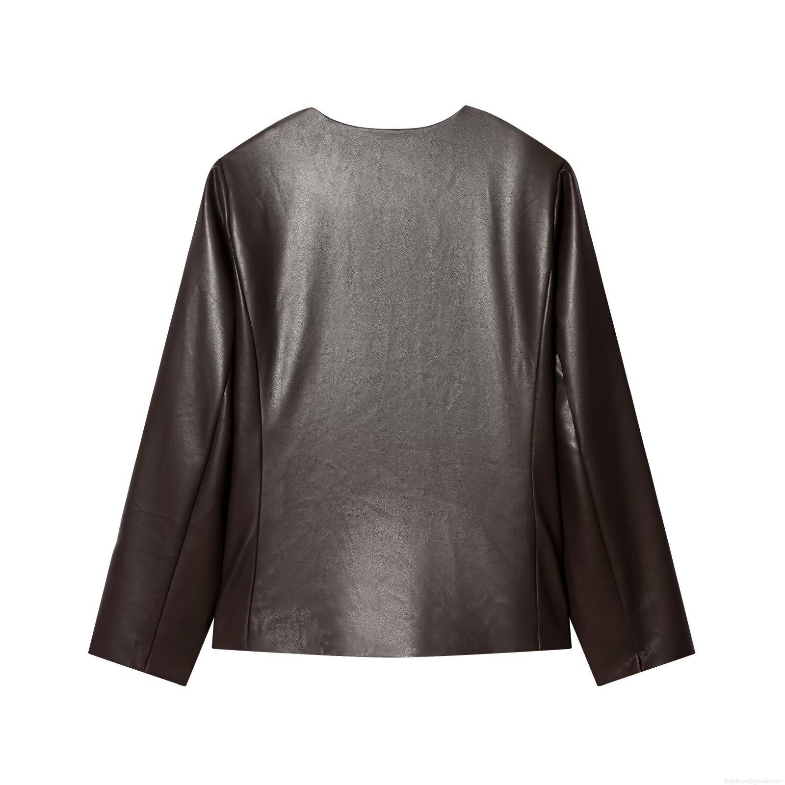 • Women's Minimalist PU Faux Leather Jacket Round Neck Single Breasted Long Sleeve Short Coat With Pockets Casual Versatile Polyester Daily Outerwear For Women