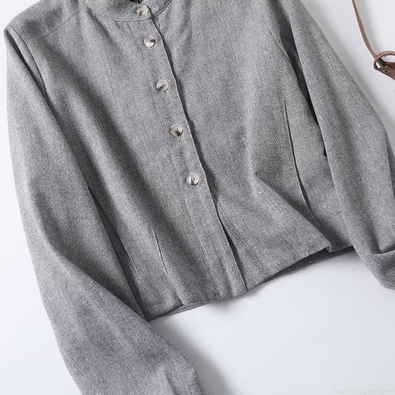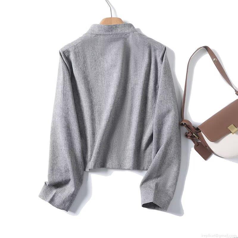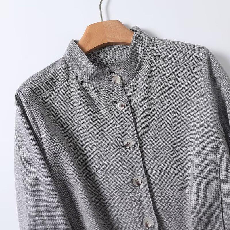 • Women's Minimalist Stand Collar Short Jacket Loose Fit Long Sleeve 100% Polyester Single Breasted Coat For Daily Office Commuting Solid Color Grey Casual Outerwear