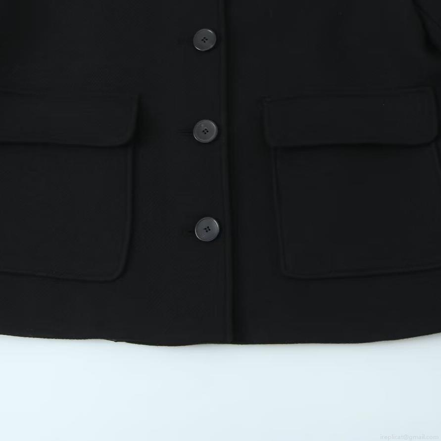 • Women's Minimalist Stand Collar Woolen Coat Single Breasted Short Jacket With Large Flap Pockets Winter Casual Polyester Spandex Outerwear For Women