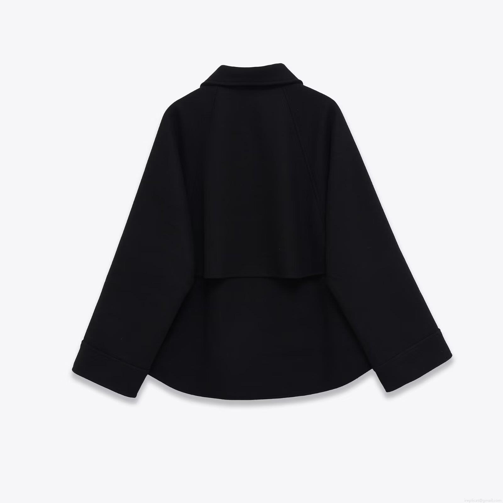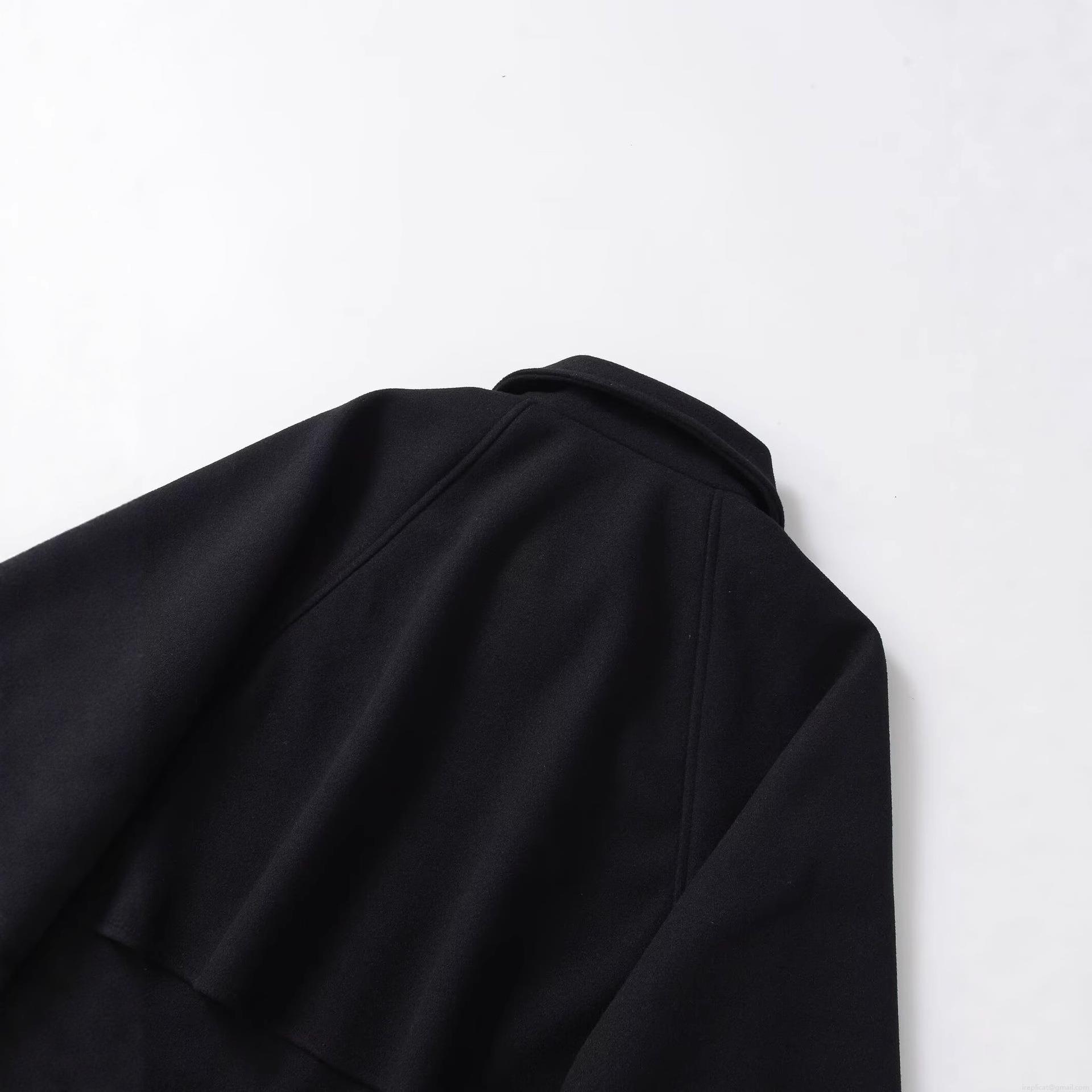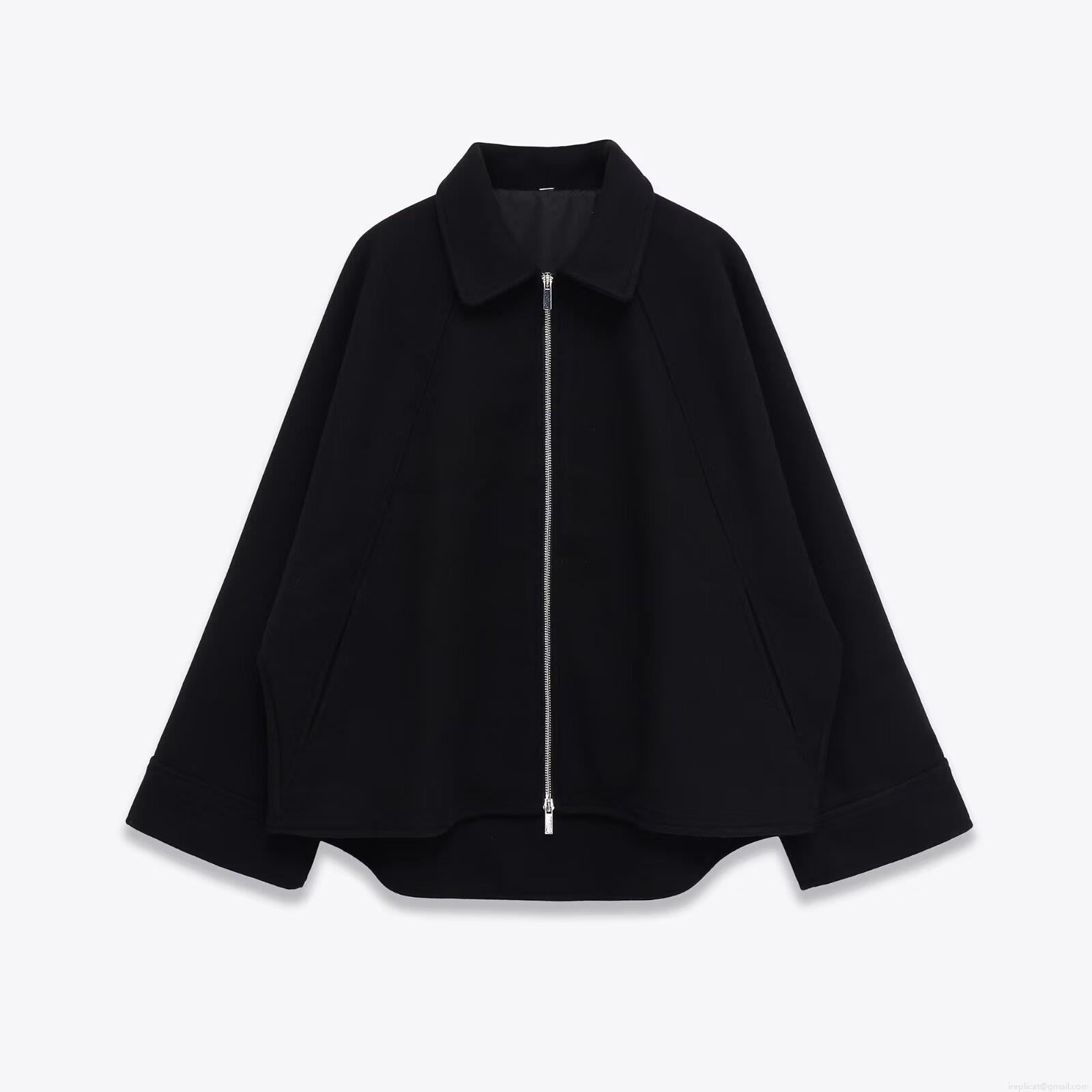 • Women's Modern Minimalist Black Zip Up Lapel Jacket 100% Polyester Woolen Texture Long Sleeve Oversized Casual Short Coat Streetwear Winter Outerwear