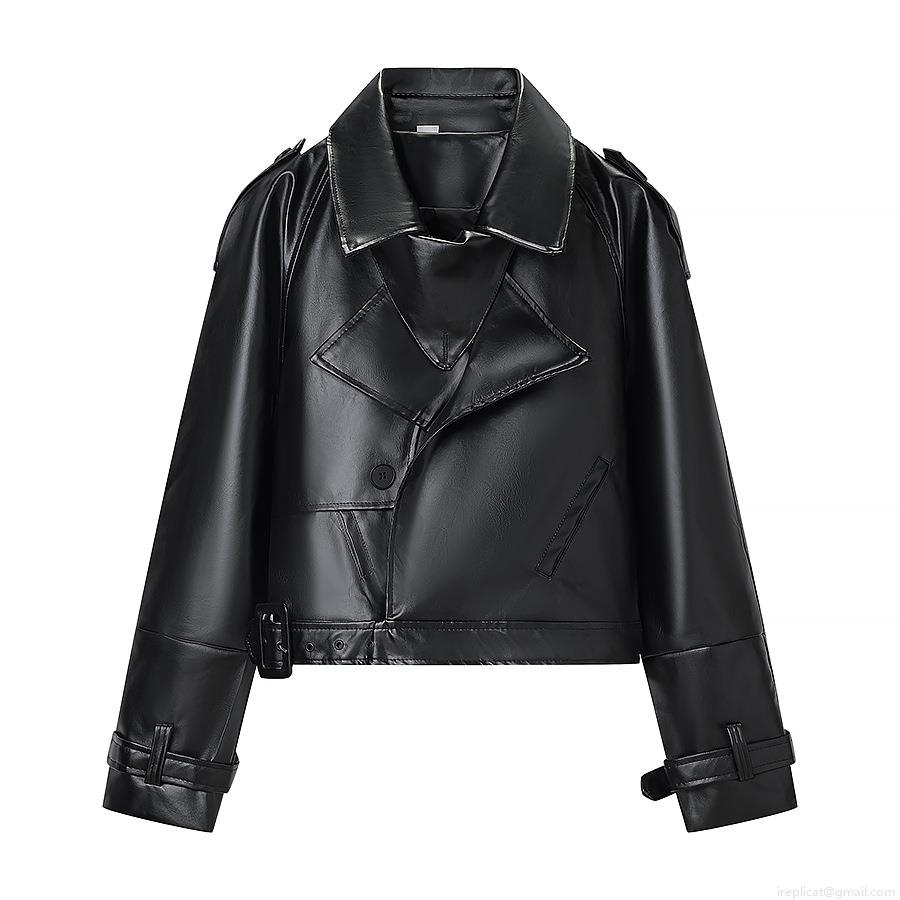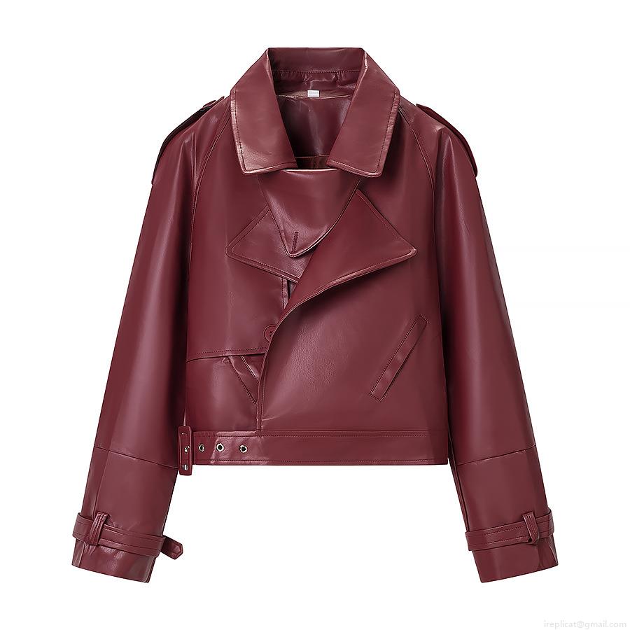 Women's Motorcycle PU Faux Leather Jacket Short Notched Lapel Coat With Belt Zip Up Biker Streetwear Fashion Autumn Outwear