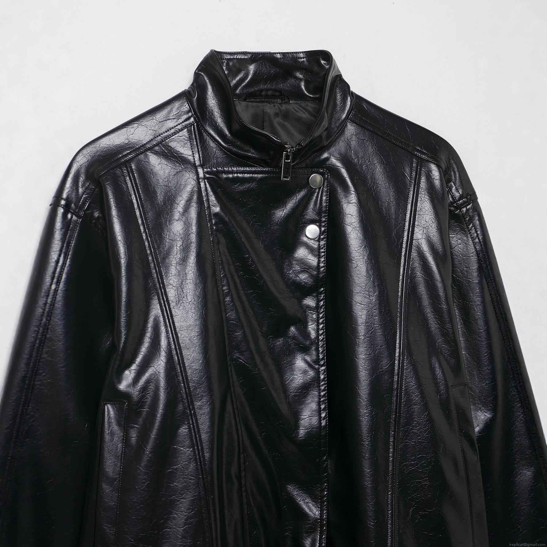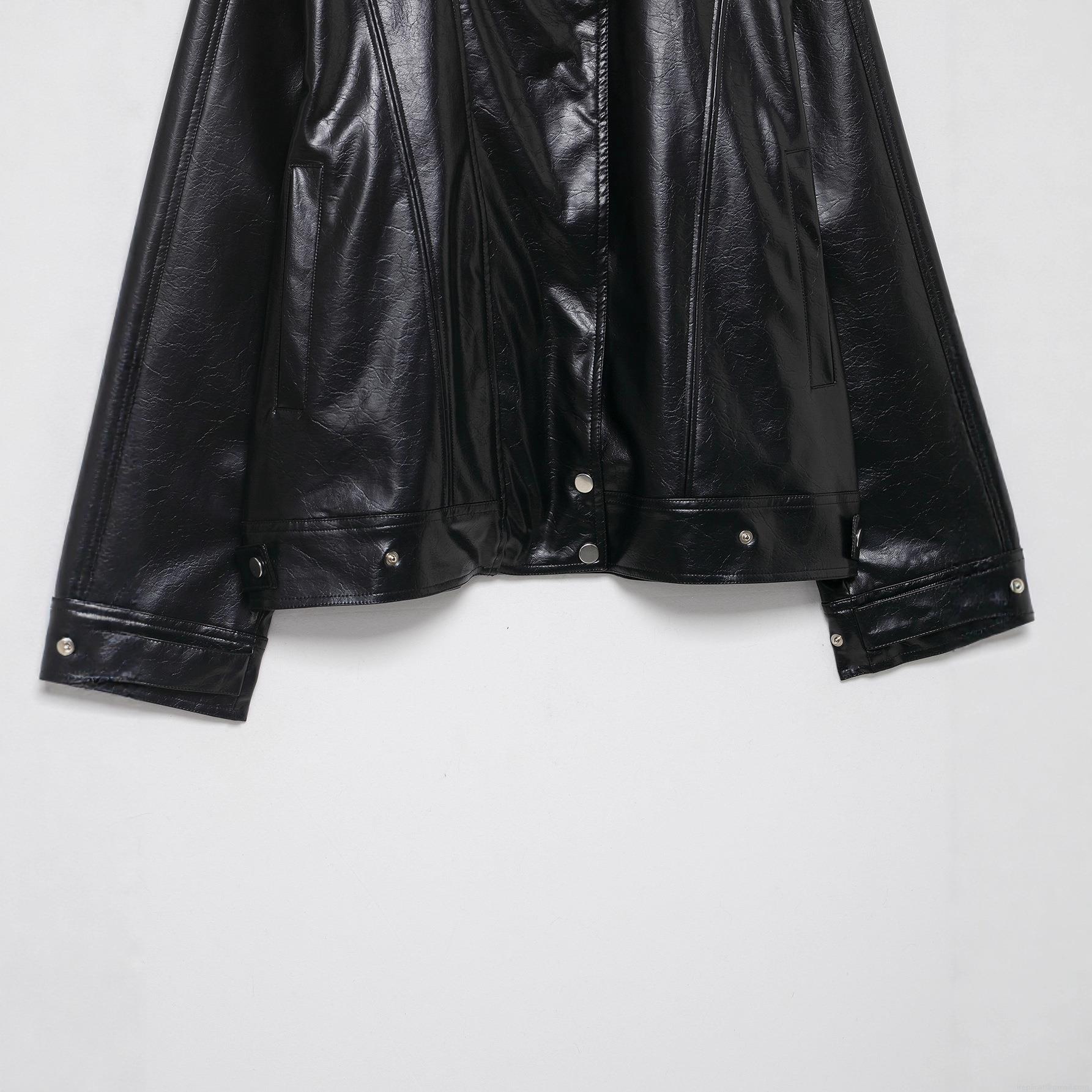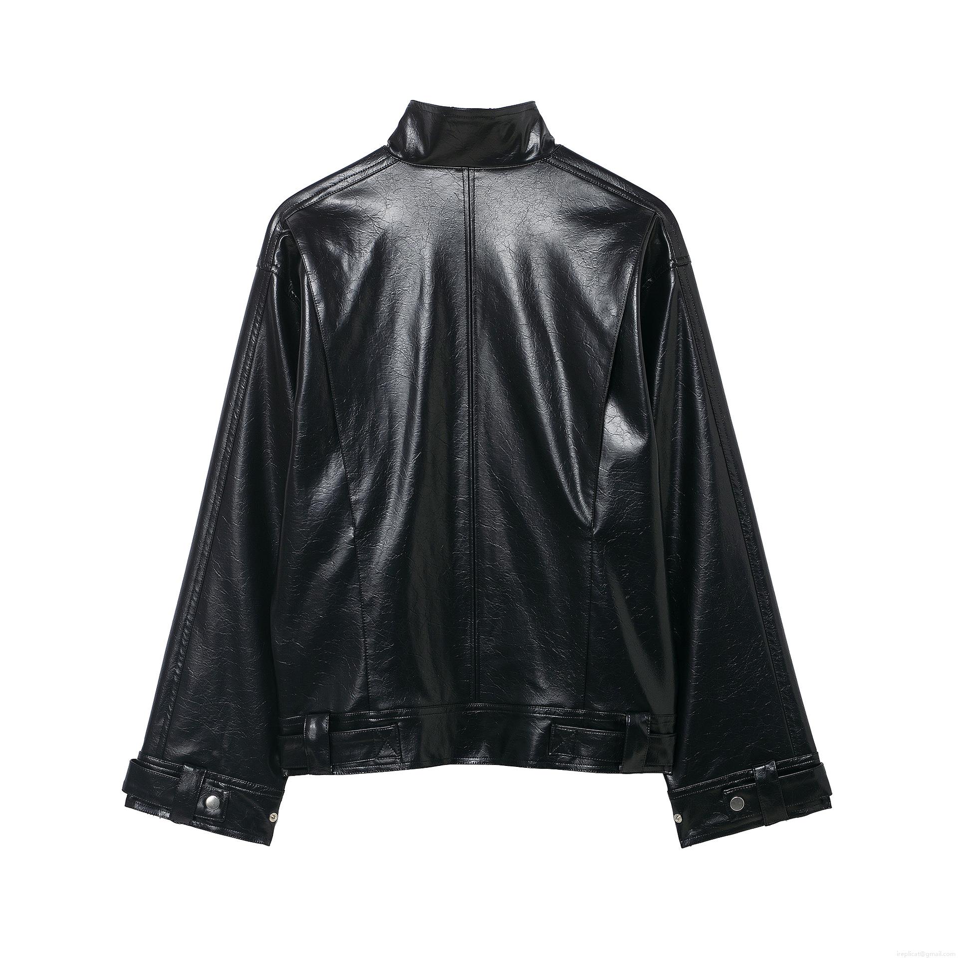 • Women's Motorcycle PU Leather Jacket Slanted Zipper Loose Fit Solid Color Autumn Winter Biker Outerwear Coat With Pockets For Ladies Streetwear