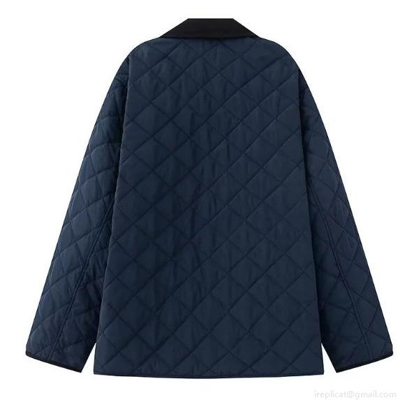 • Women's Navy Blue Diamond Quilted Jacket With Corduroy Collar Vintage Casual Cotton Padded Coat Warm Outerwear With Metal Buttons For Autumn Winter