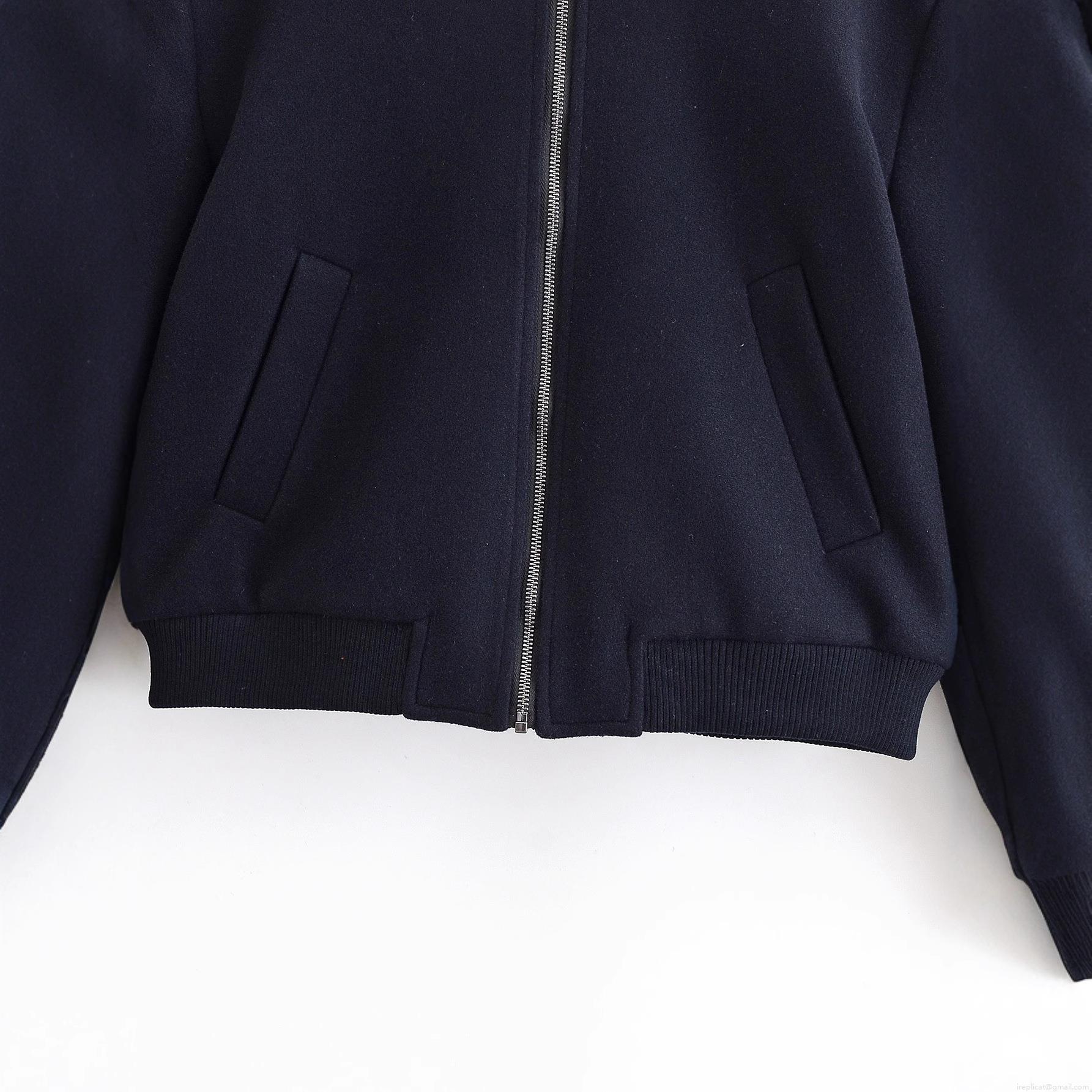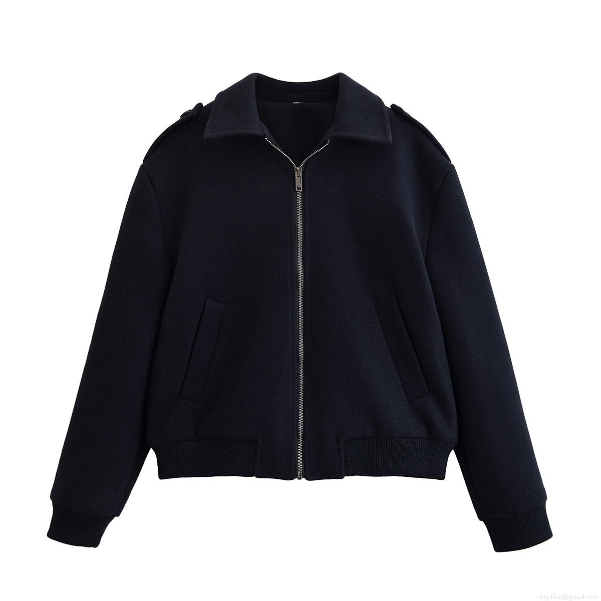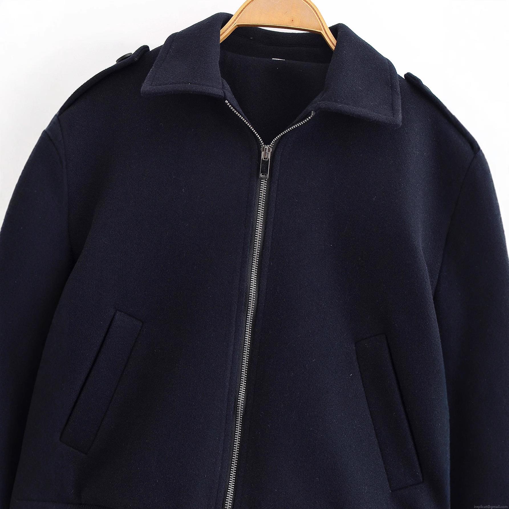 • Women's Navy Blue Lapel Zip-Up Jacket Fashion Loose Fit Wool-Like Bomber Outerwear With Pockets And Epaulettes Casual Streetwear Jacket For Women
