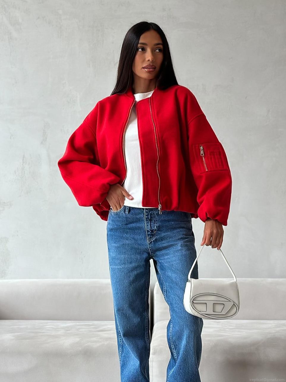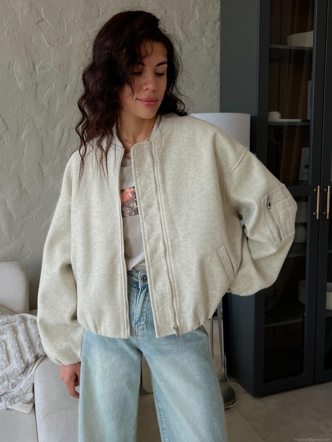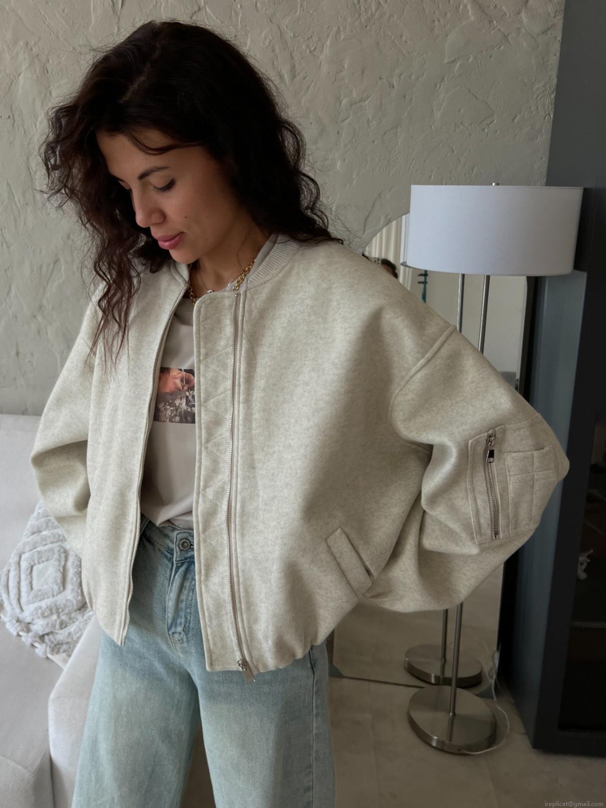 • Women's Oversized Bomber Jacket Polyester Wool Blend Texture Full Zipper Ribbed Trim Sleeve Pocket Minimalist Chic European American Style Casual Streetwear Outerwear