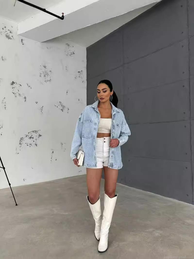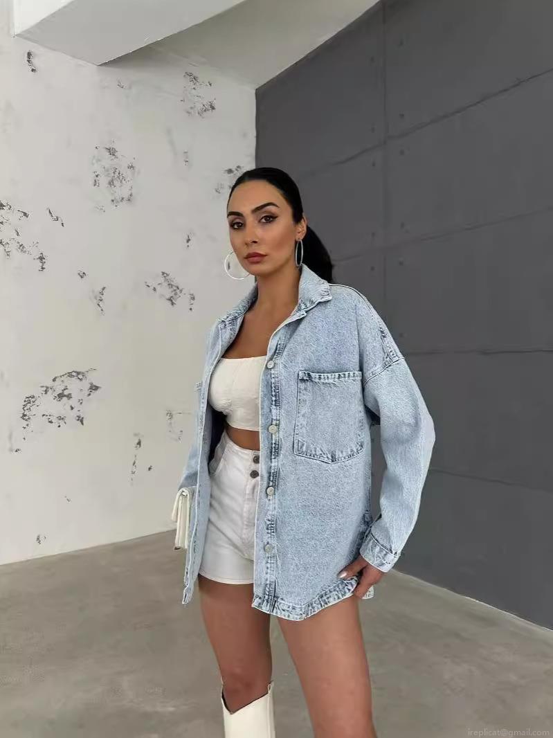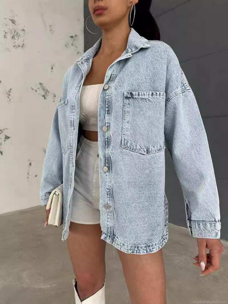 • Women's Oversized Denim Jacket American Vintage Washed Distressed Long Sleeve Jean Jacket Single Breasted Loose Outerwear Streetwear Coat