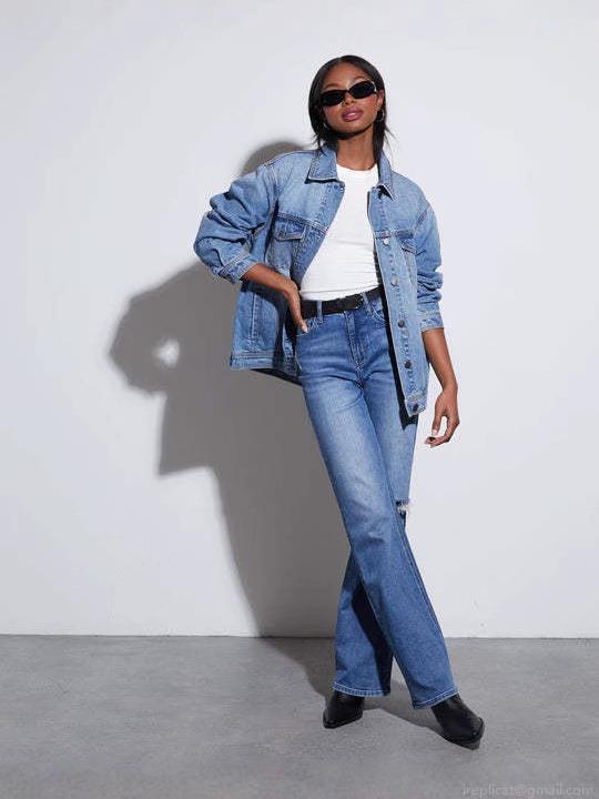 • Women's Oversized Denim Jacket Washed Cotton Blend Casual Long Sleeve Outerwear With Pockets Button Down Loose Fit Jean Coat For Daily Travel Streetwear