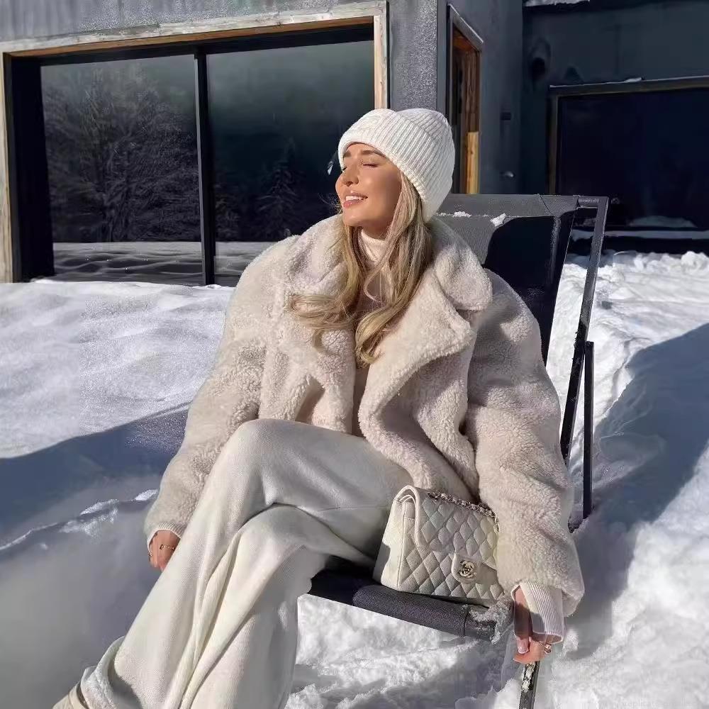 Women's Oversized Faux Lamb Wool Jacket Warm Sherpa Fleece Coat With Lapel Button Down Short Winter Outdoor Casual Outwear For Ladies