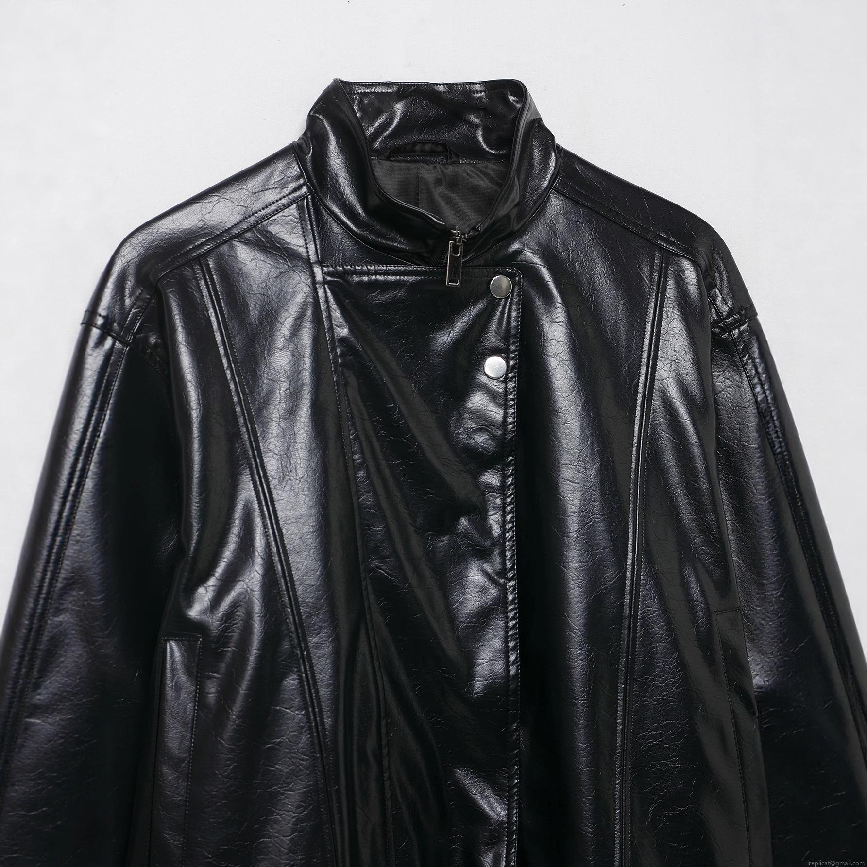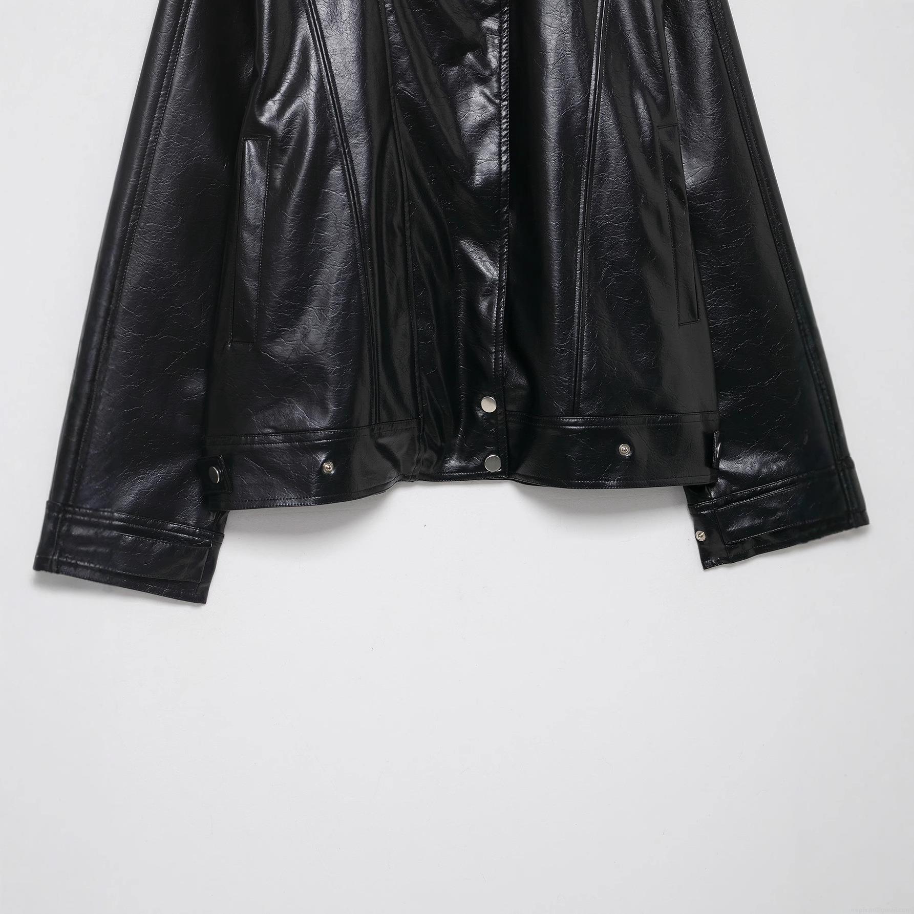 • Women's Oversized Motorcycle Jacket Faux PU Leather Fashion Casual Biker Coat With Zipper Pockets Lapel Long Sleeve Solid Color Outwear For Streetwear