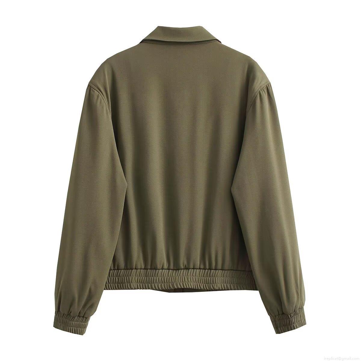 Women's Oversized Pilot Jacket Vintage Distressed Polyester Coat Casual Long Sleeve Zipper Bomber Jacket Outerwear For Ladies Winter Fashion