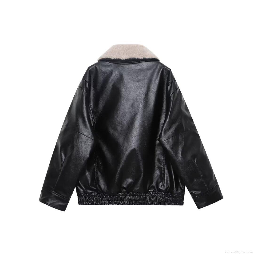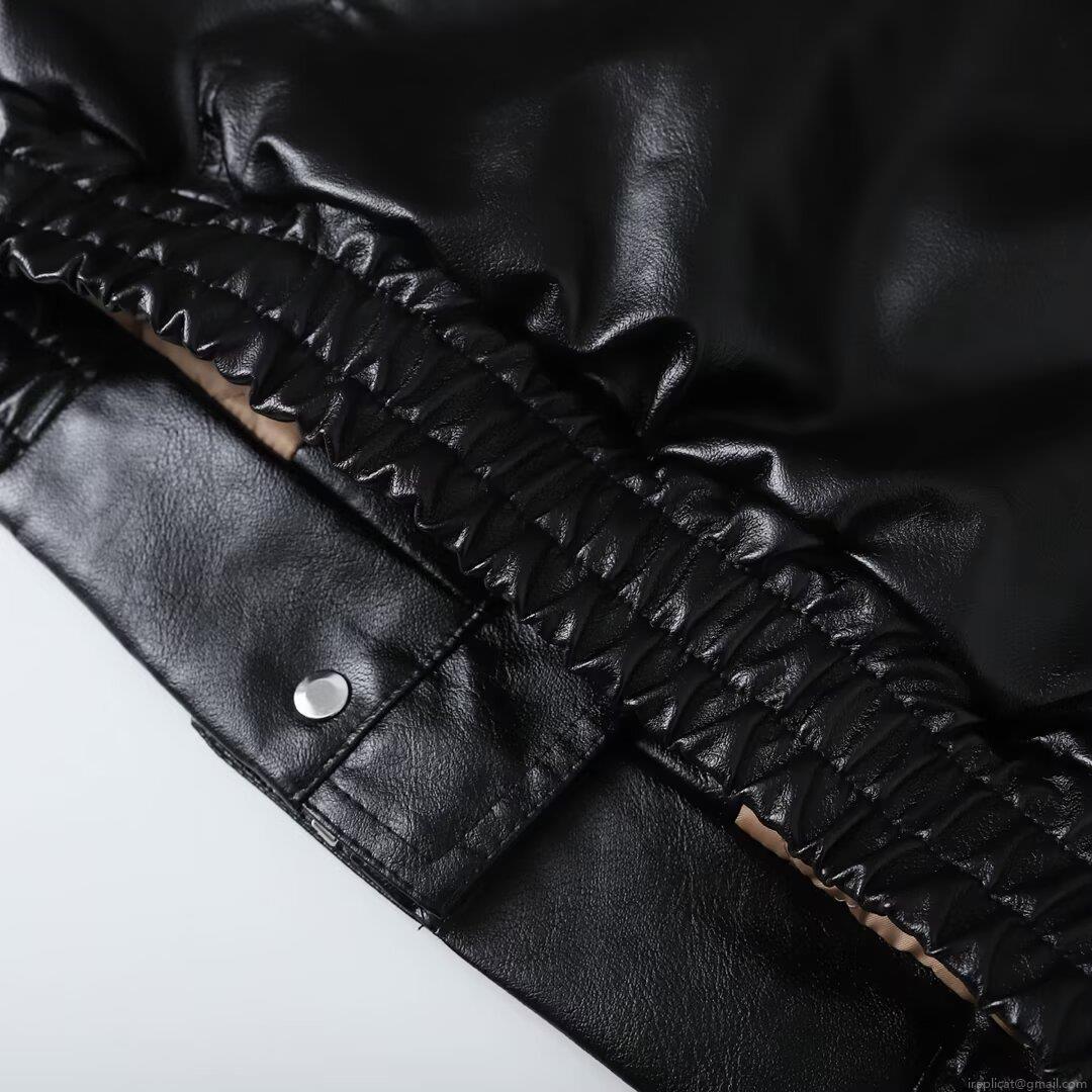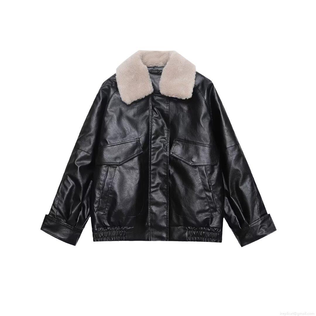 • Women's Oversized PU Leather Bomber Jacket With Detachable Faux Fur Collar Winter Warm Fleece Lined Zip Up Short Coat Streetwear Black