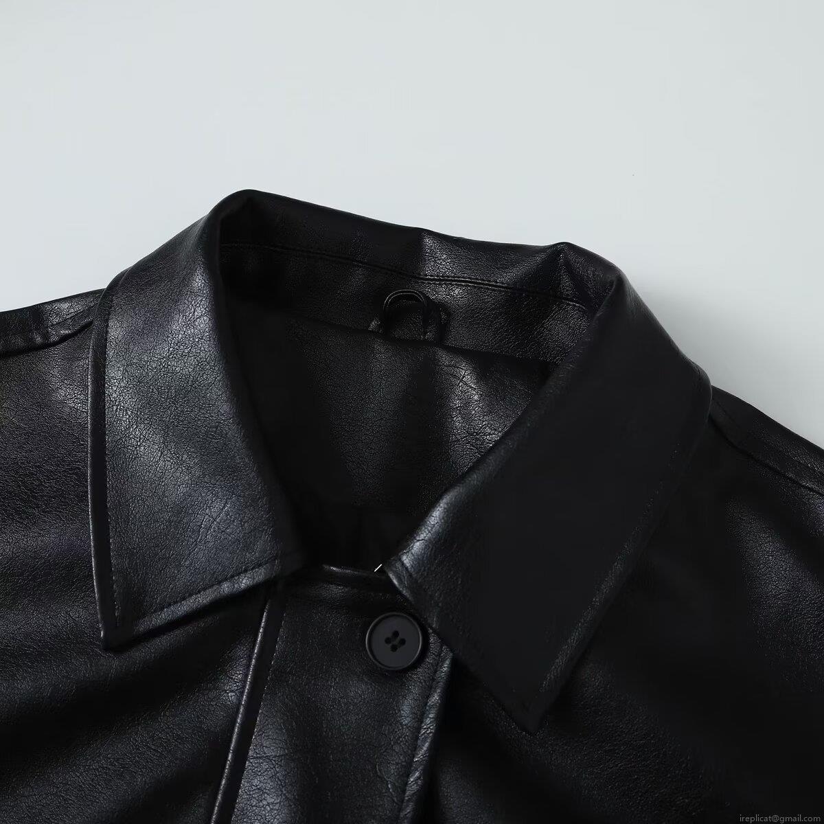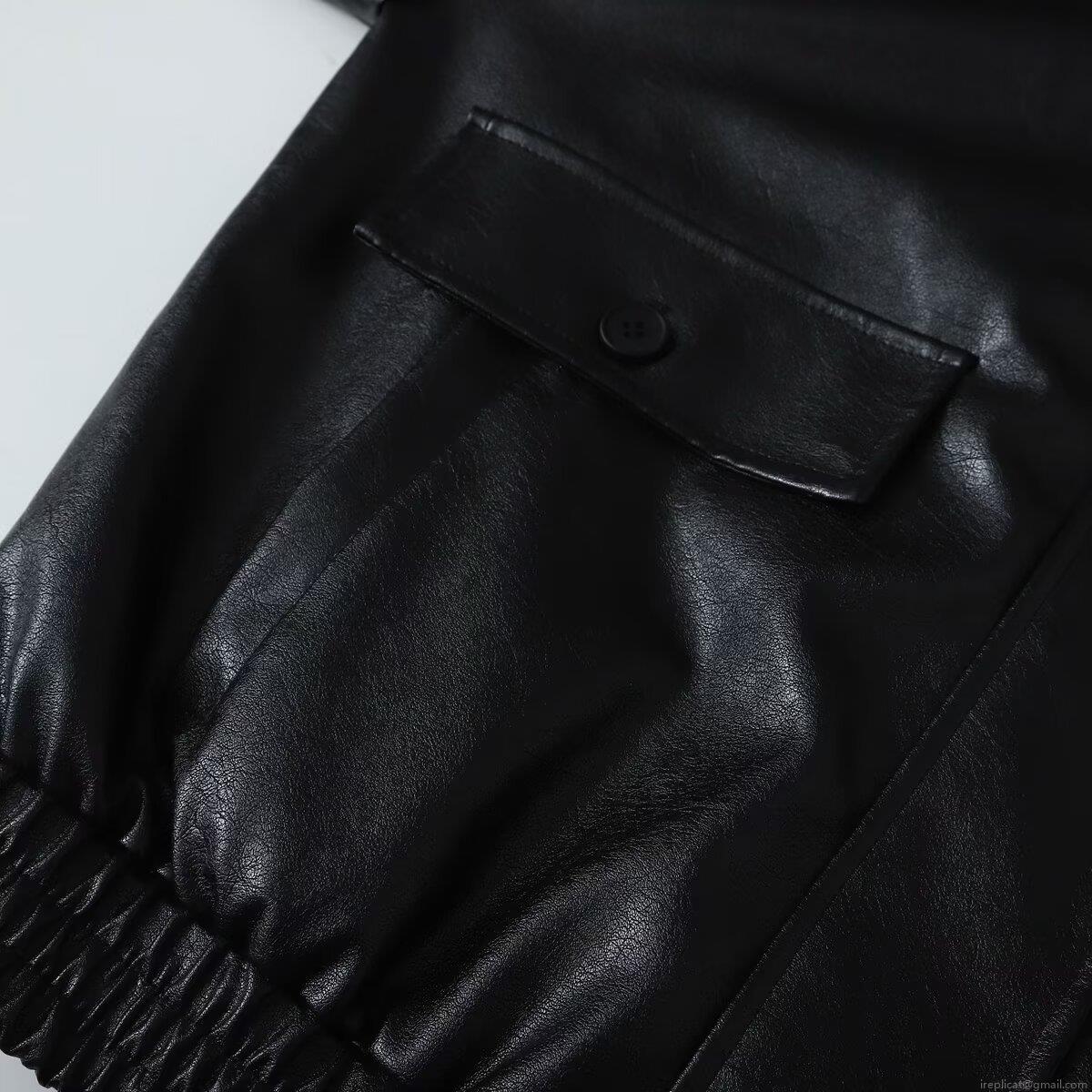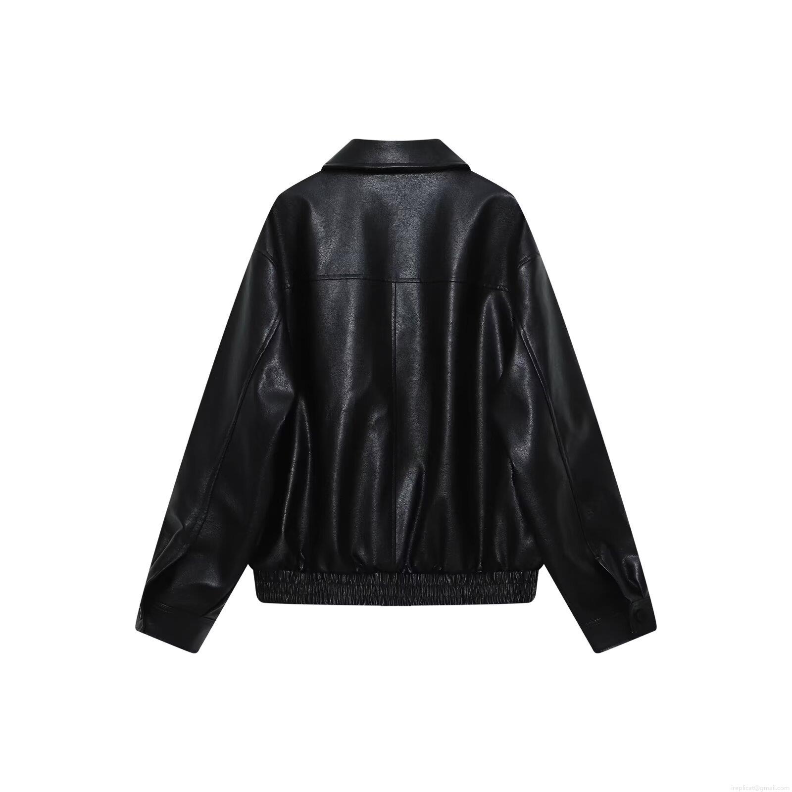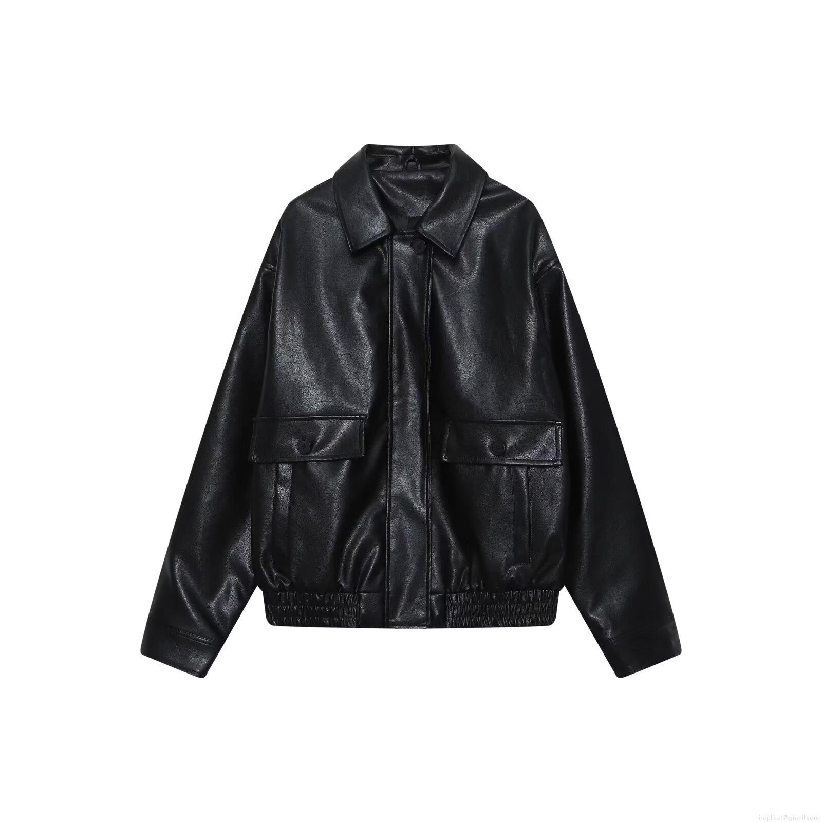 • Women's Oversized PU Leather Jacket Retro Lapel Zipper Baseball Uniform Outerwear With Pockets Loose Fit Solid Black Faux Leather Coat For Autumn Streetwear