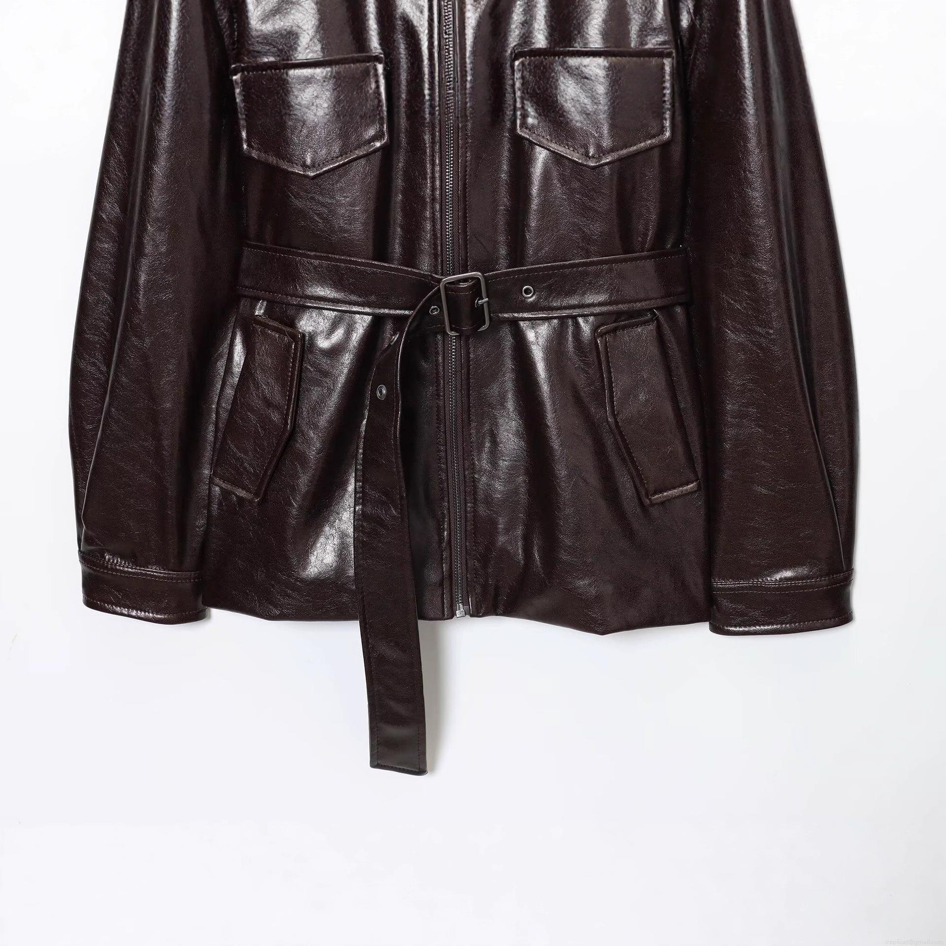 • Women's Oversized PU Leather Jacket With Faux Fur Collar Belted Mid-length Winter Outerwear Zip Up Streetwear Coat With Pockets