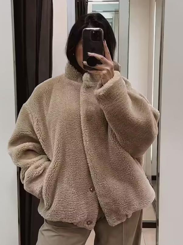 • Women's Oversized Teddy Fleece Jacket Casual Loose Sherpa Bomber Jacket Autumn Winter Thick Warm Zip Up Coat Outwear for Ladies