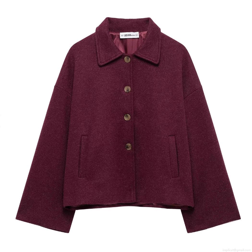 • Women's Oversized Woolen Jacket Casual Lapel Button Down Cropped Coat Solid Color Long Sleeve Outwear For Autumn Winter