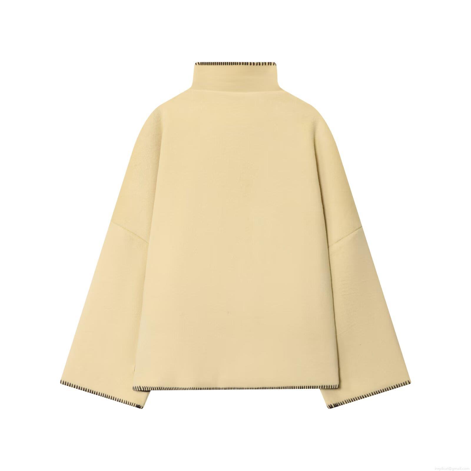 • Women's Oversized Woolen Like Jacket High Neck Single Breasted Long Sleeve Coat With Contrast Stitching Autumn Winter Loose Streetwear Outerwear