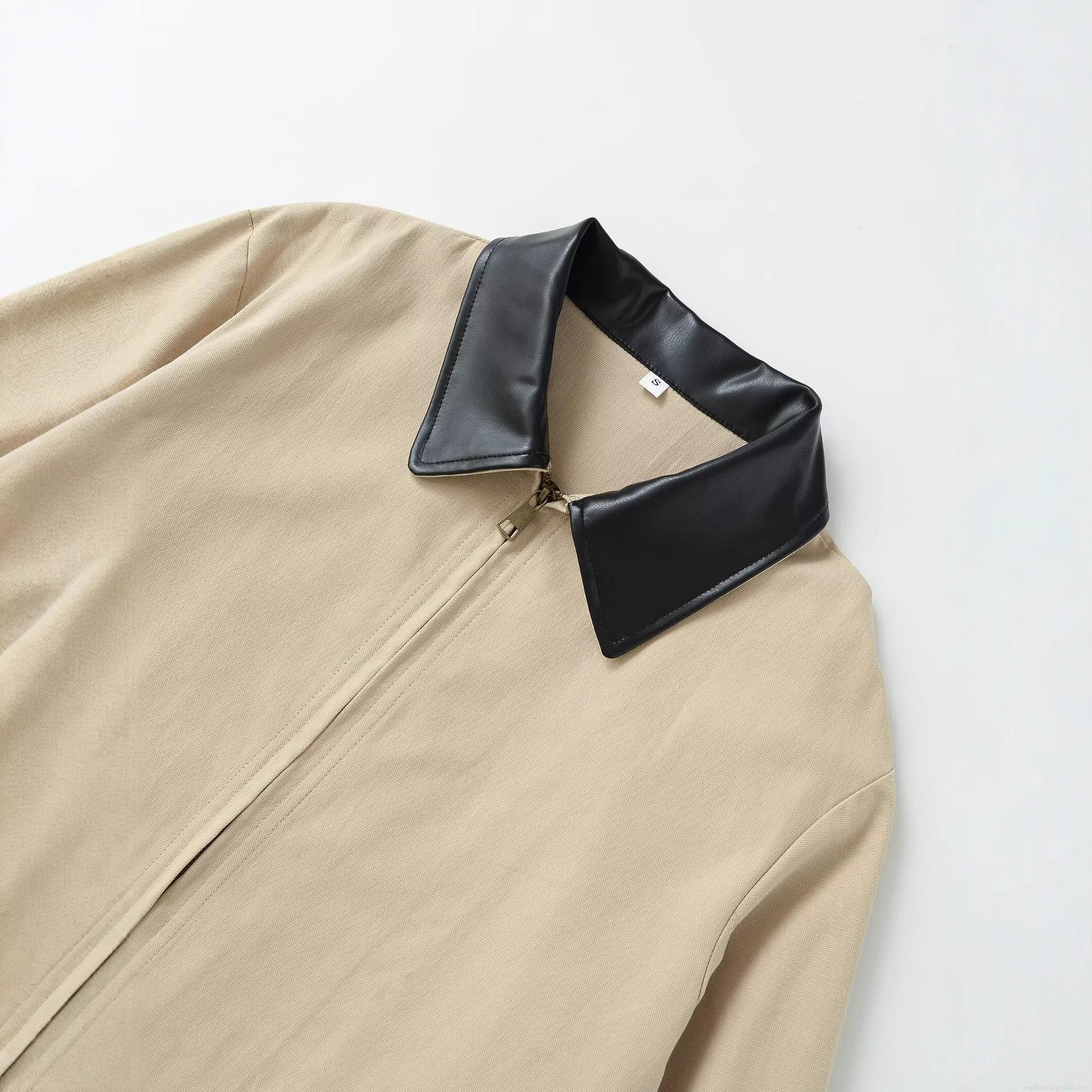 Solid Color, Splice, Pocket Decoration, Leather Collar, Zipper Splicing