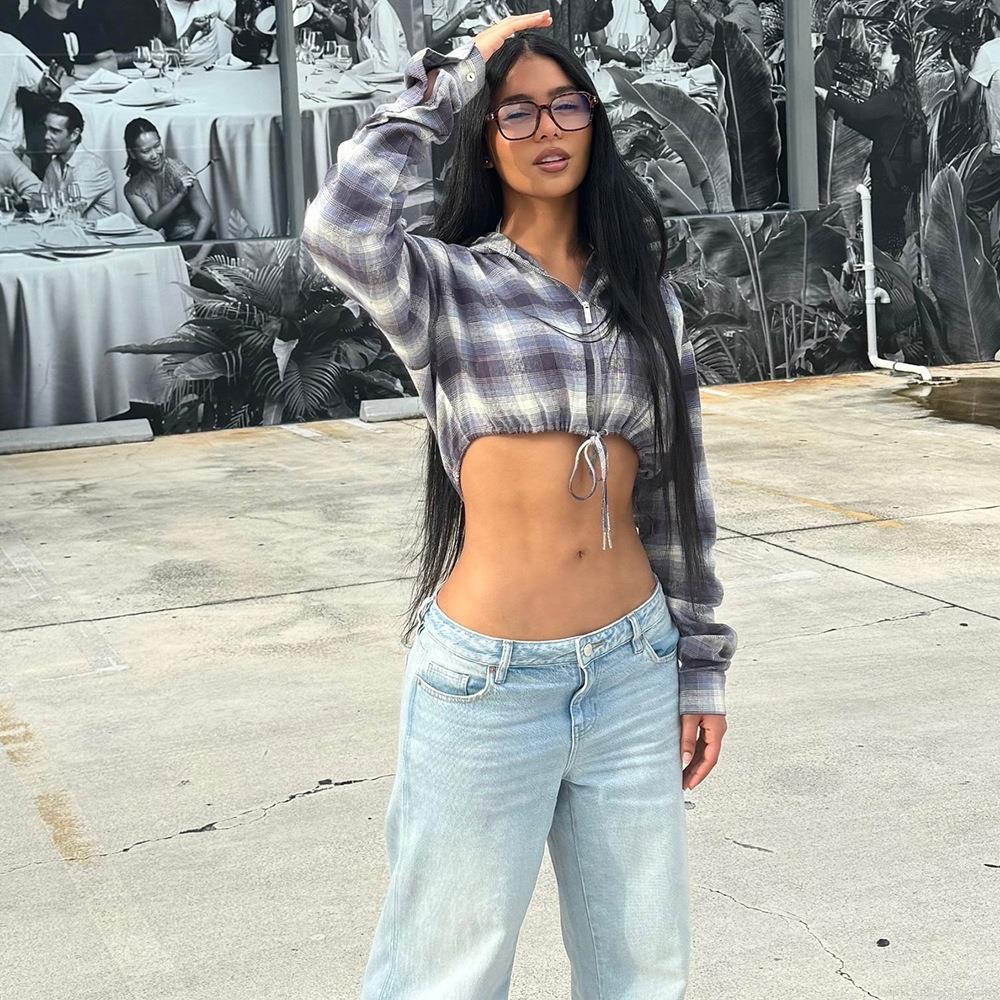 • Women's Plaid Cropped Hooded Jacket Woven Cotton Zip Up Drawstring Waist Long Sleeve Streetwear Outwear Coat for Women Daily Outdoor Fashion