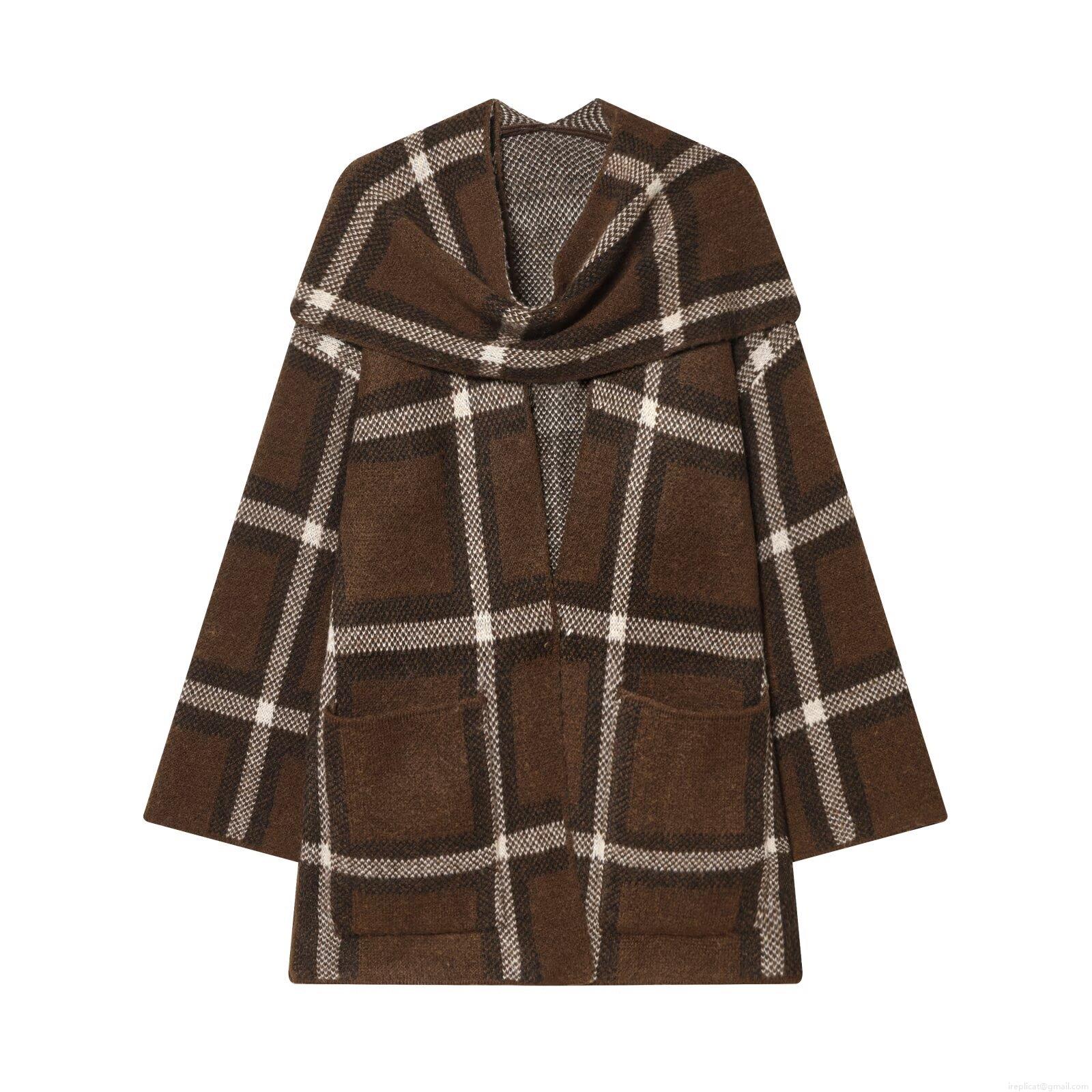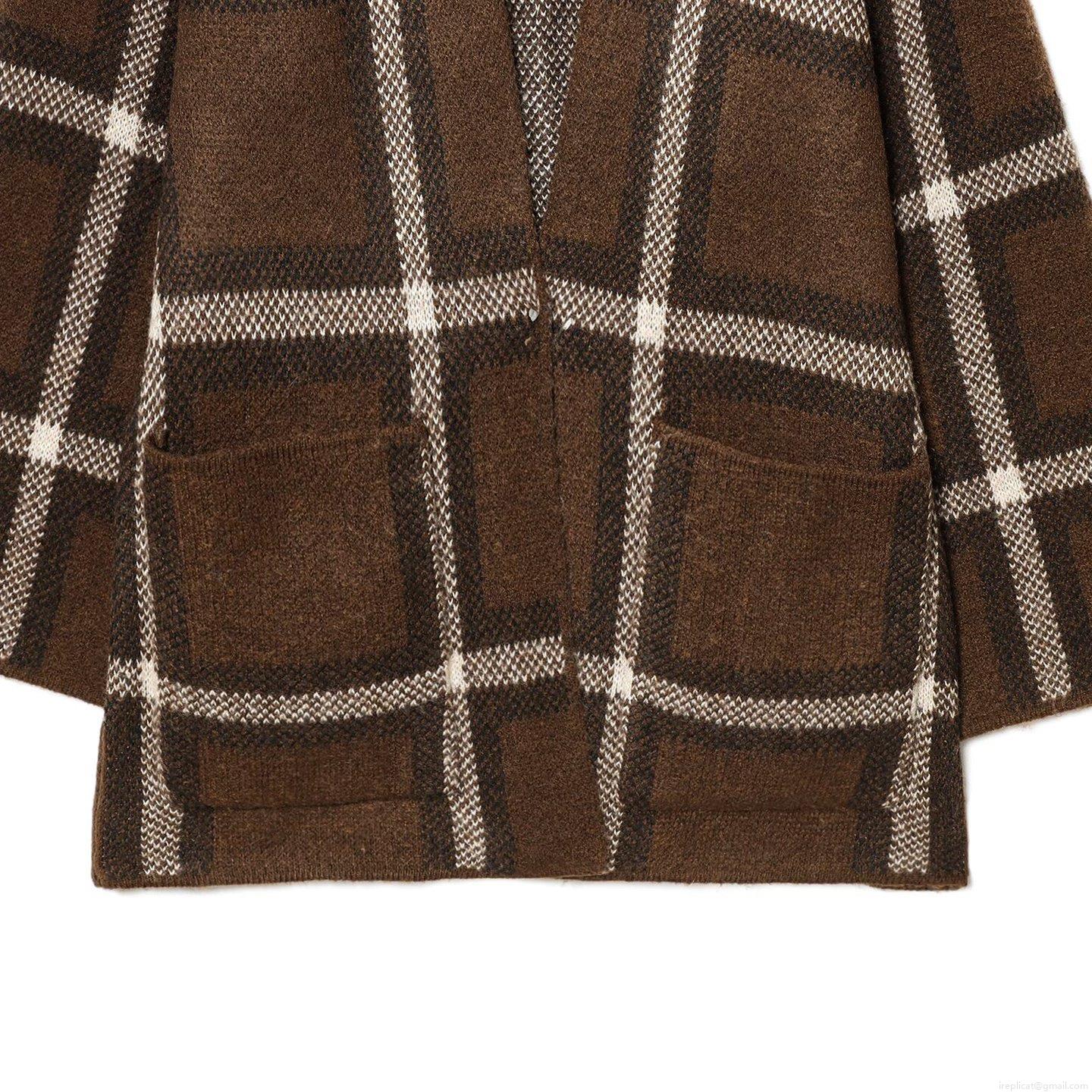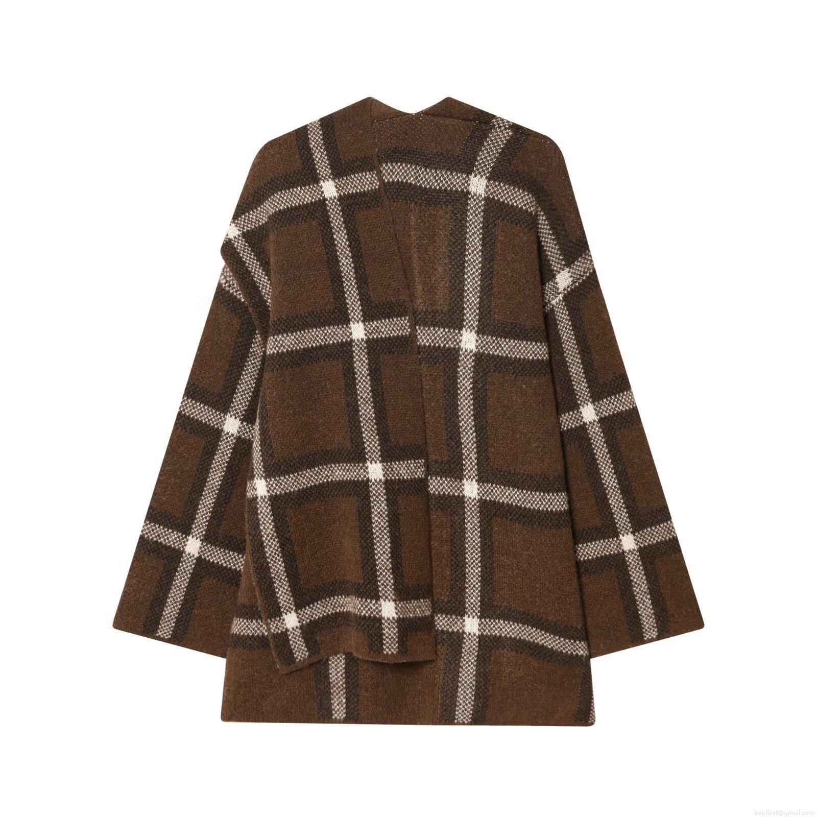 • Women's Plaid Knit Cardigan Coat Casual Scarf Collar Loose Fit Knitted Jacket Outerwear With Pockets Long Sleeve Warm Open Front Sweaters For Winter
