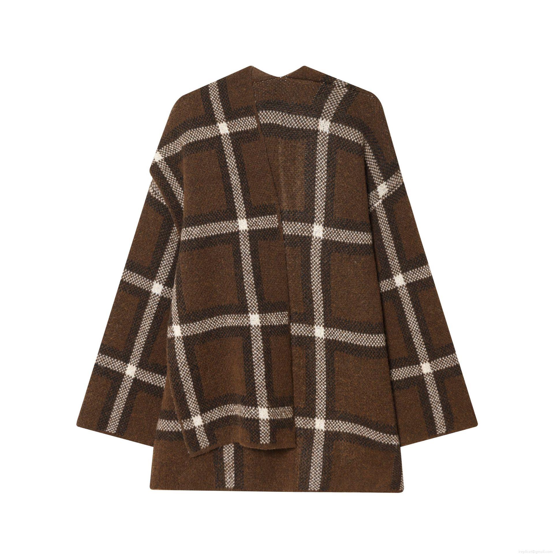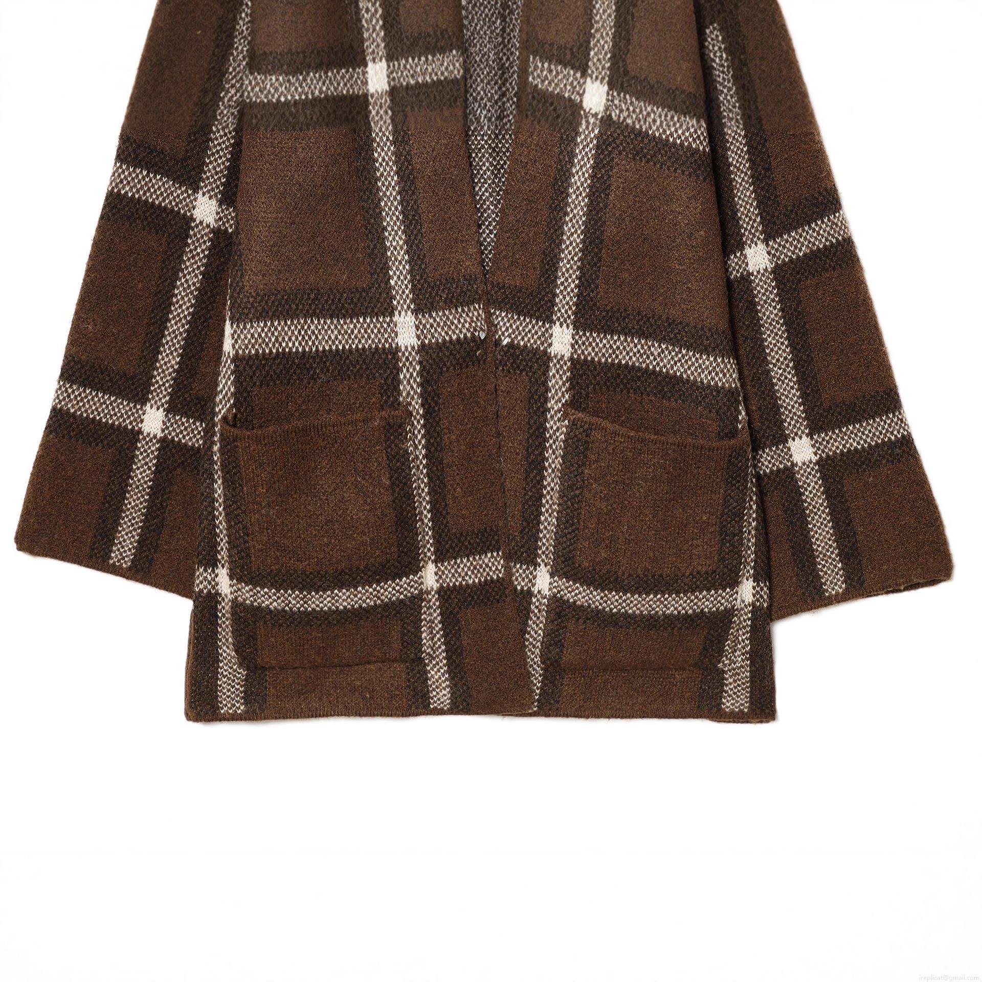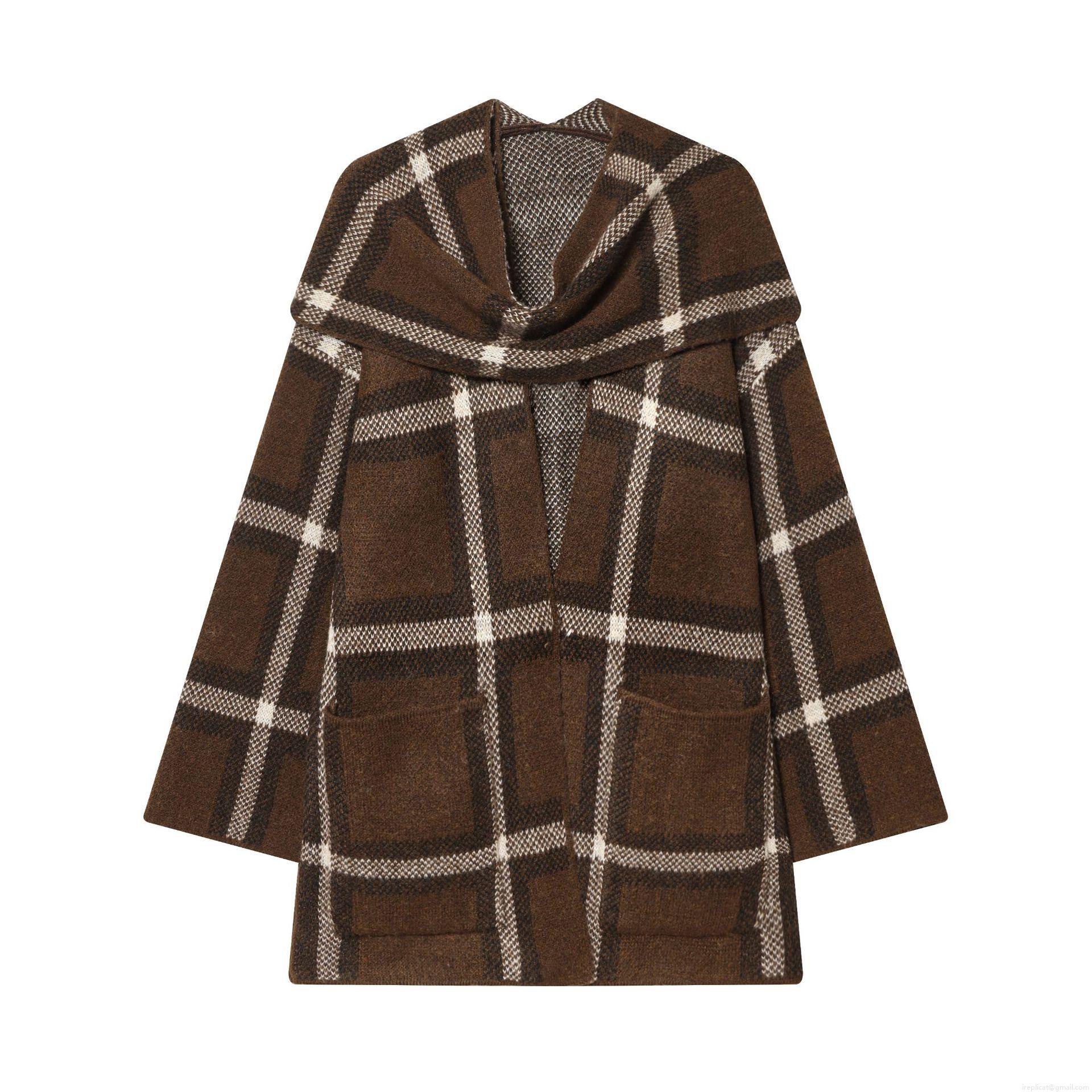 • Women's Plaid Knit Outerwear With Scarf Collar Long Sleeve Polyester Checkered Cardigan Casual Fall Winter Loose Jacket With Pockets Streetwear Coat