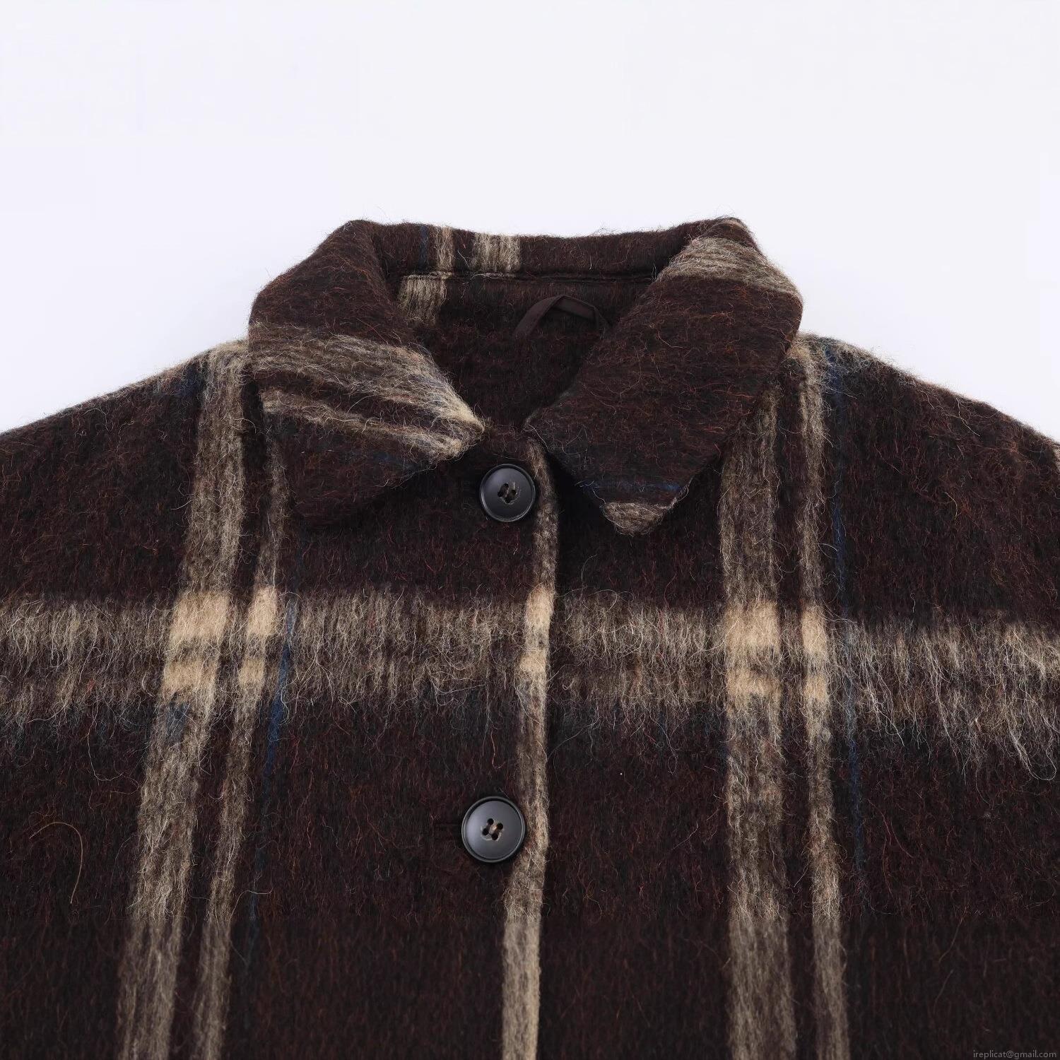 • Women's Plaid Lapel Jacket Long Sleeve Single Breasted Woolen Texture Coat Casual Streetwear For Autumn Winter Outwear