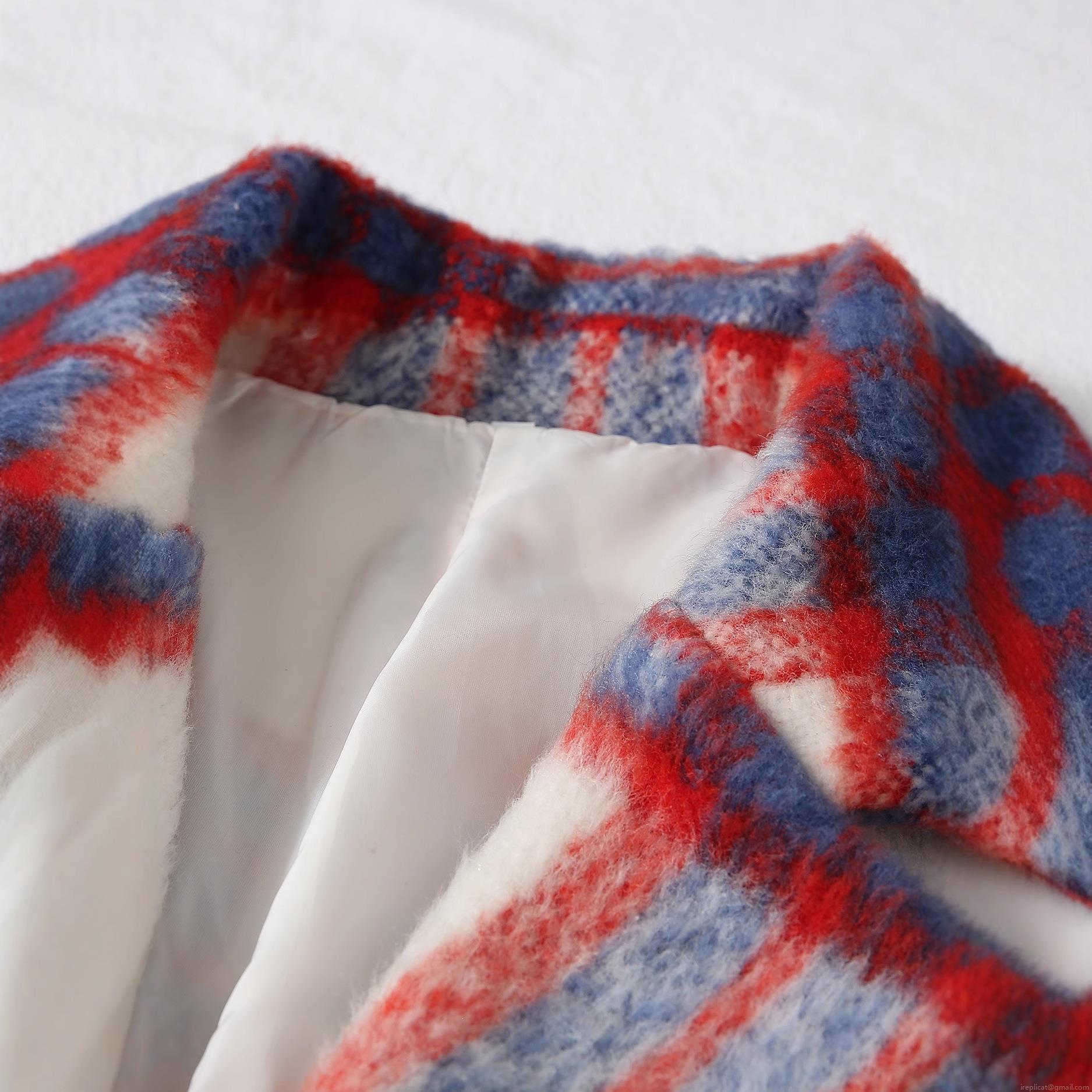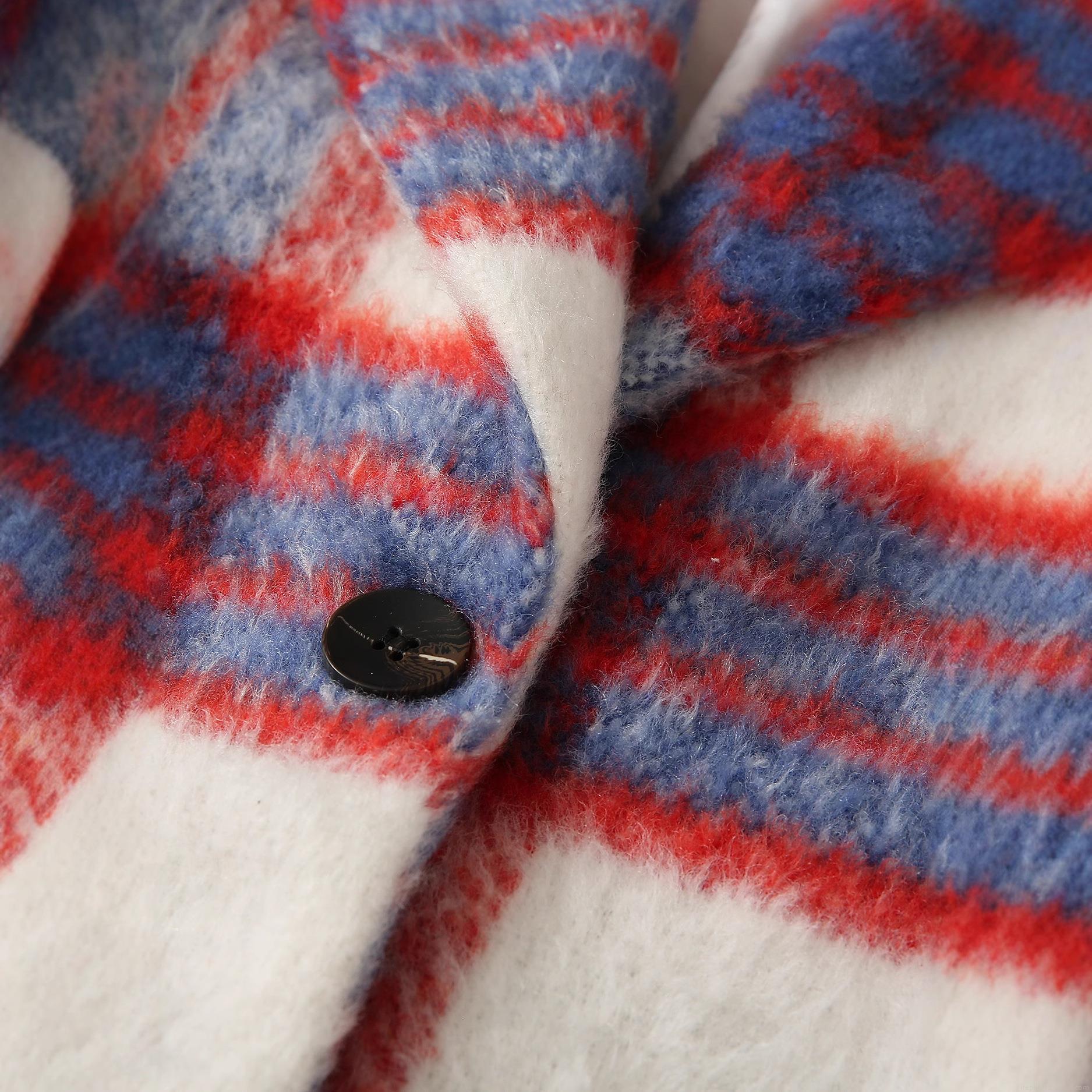 • Women's Plaid Long Woolen Coat Red Blue White Checkered Lapel Long Sleeve Single Breasted Loose Overcoat Autumn Winter Outerwear For Ladies